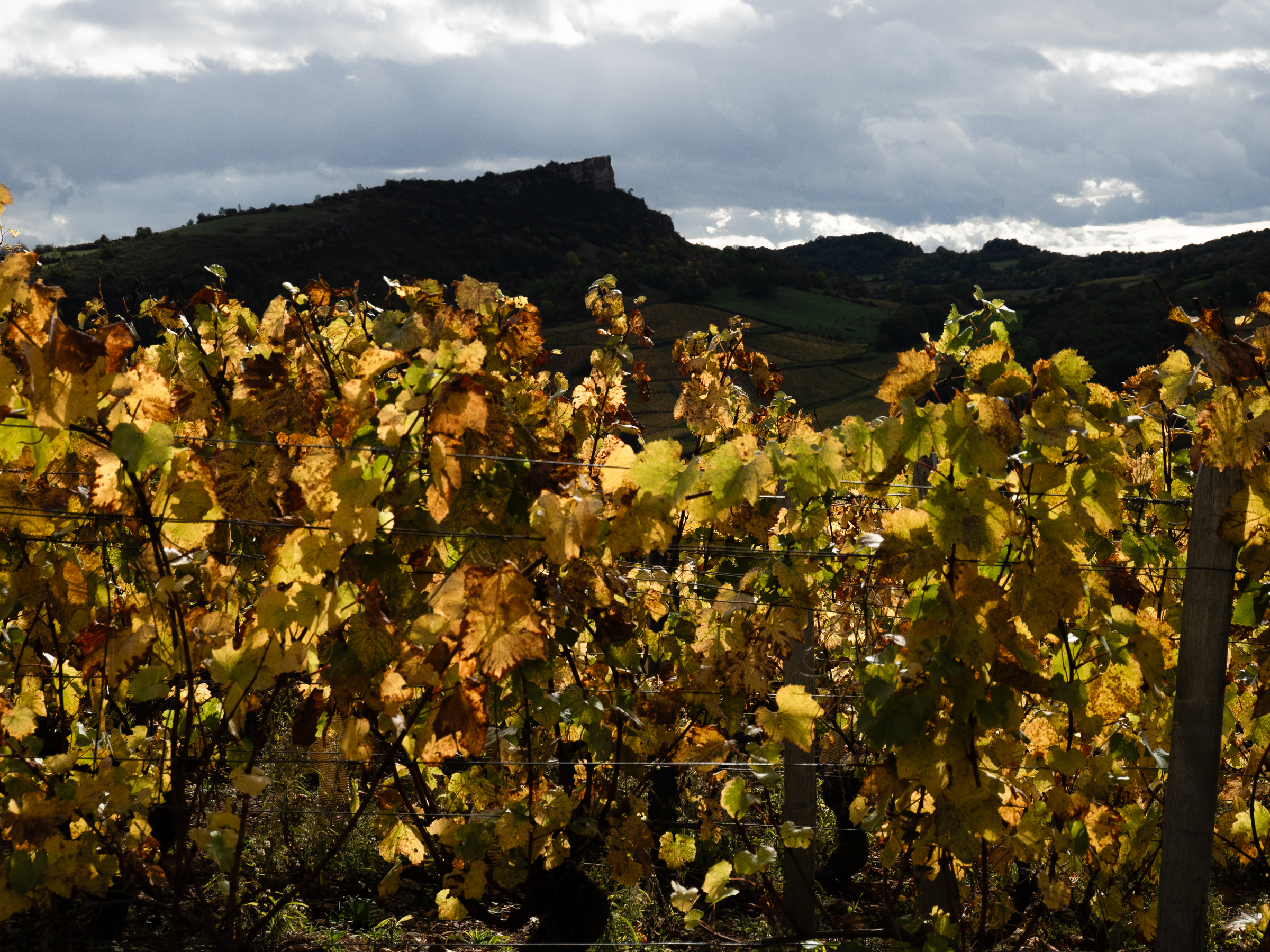 The route home from the Alps took us via the country around Macon, a favourite patch of vine clad slopes and dramatic ciffs. The two rocks of Solutre and Vergisson make for a great circular hike on a fine autumn day.