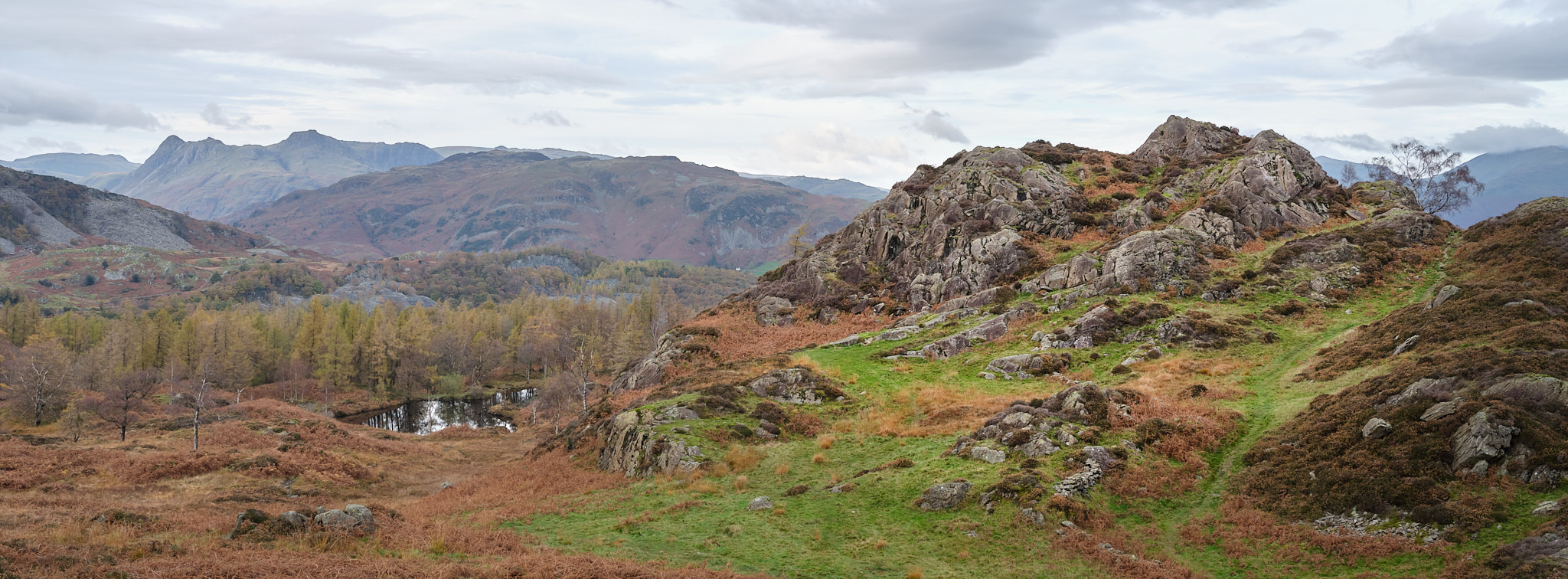Taken a little further along the walk, this wider view introduces the next craggy peak we were going to have a scramble up.