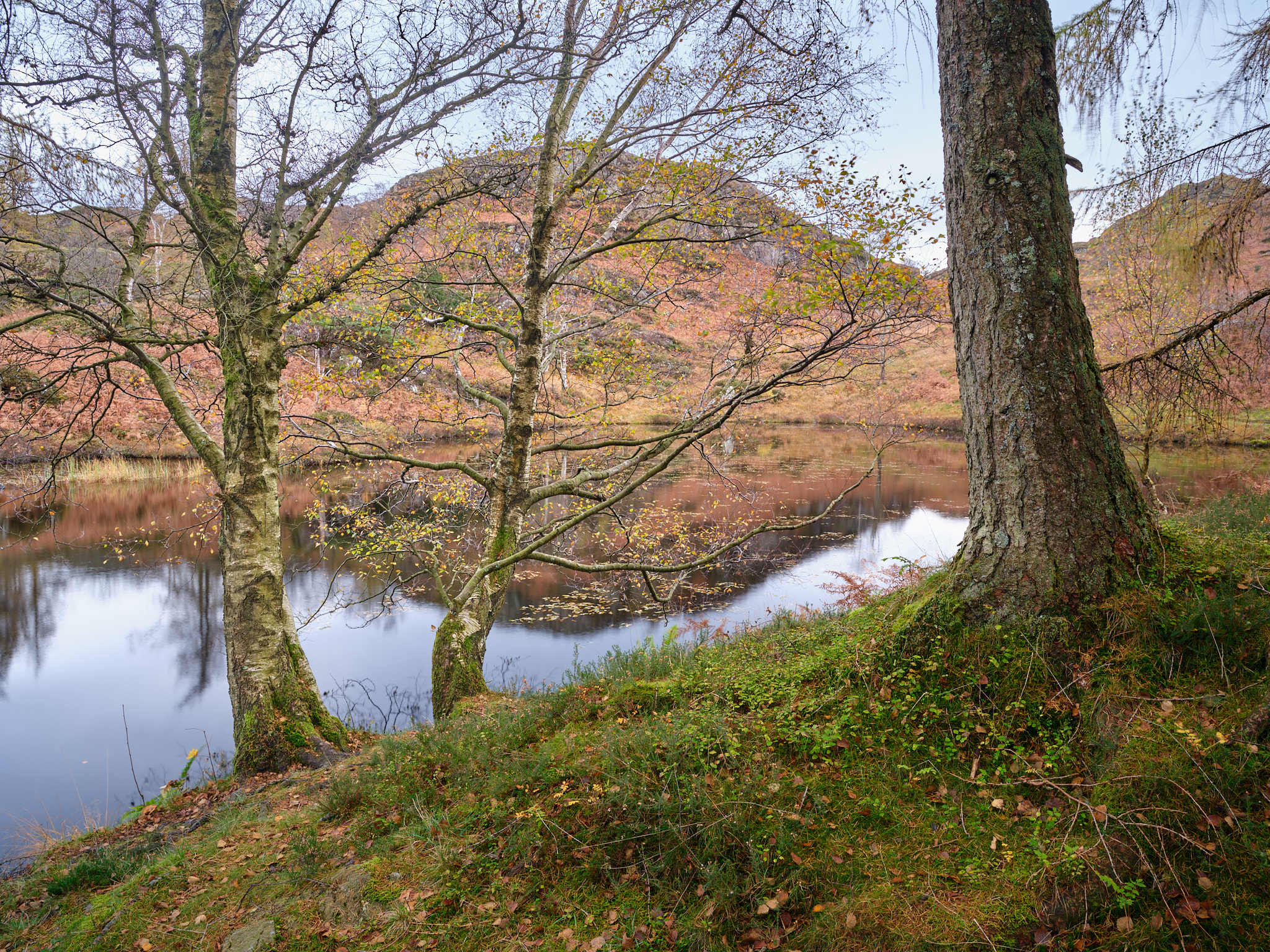 This pair of trees by the water caught my eye as I approached the reservoir, but it took playing around with half a dozen different compositions from all sides before I found this one that satisfied me, mostly due to the texture of the bark on the tree in the foreground and the details in the moss on the ground.