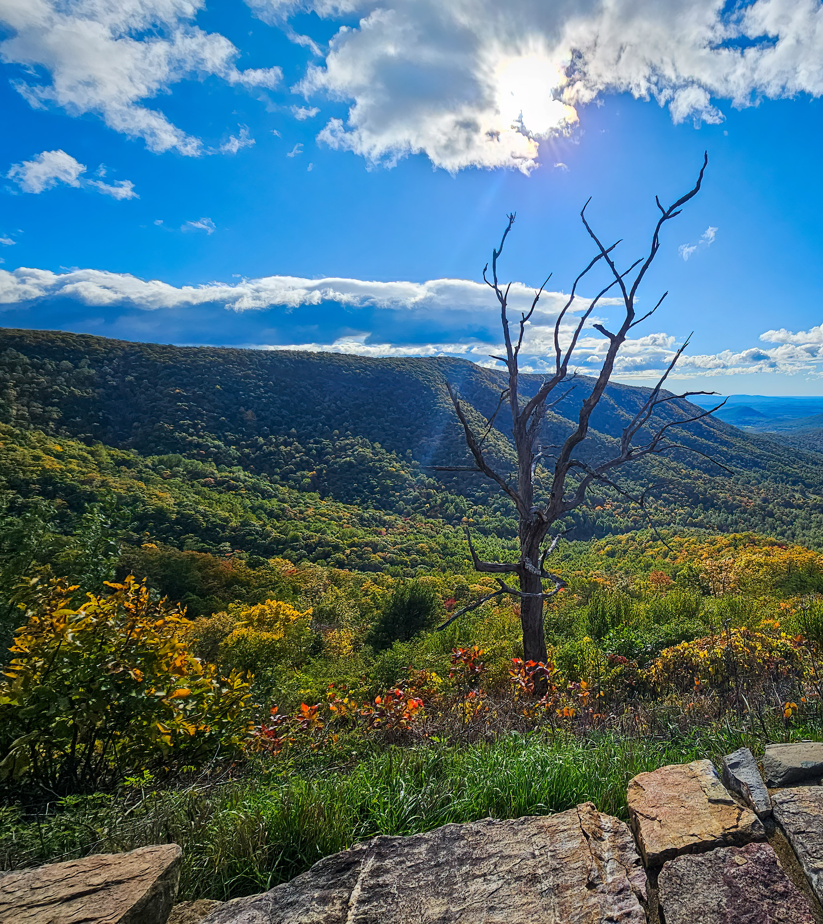 During my recent trip... The morning I entered Shenandoah National Park, it was foggy. The morning I left Shenandoah National Park, it was sunny. This allowed me to get some interesting contrasting photos...