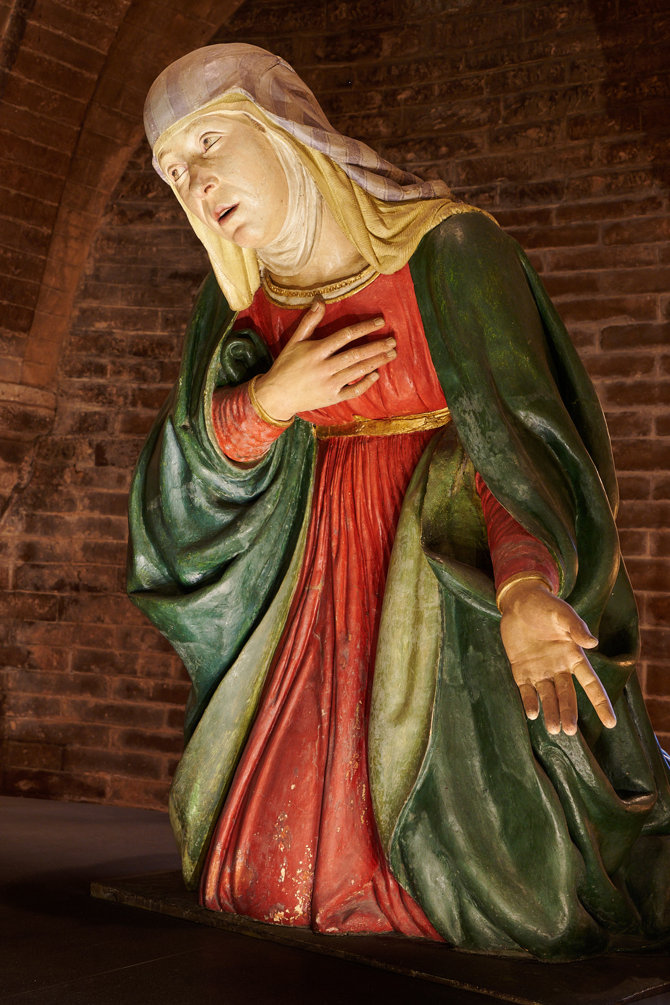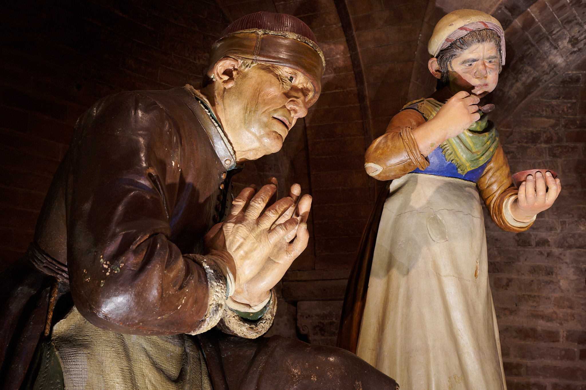 I thought the group of sculptures, known as the "Madonna della Pappa" ( Pappa, is the Italian baby talk term for baby food) in the Cathedral, would make a nice subject for the Christmas cards I make each year. The group of terracotta figures was created by Guido Mazzini in 1480 for Francesco Porcini and his wife, who appear as the two figure in the foreground. A servant ( note the hole in her blouse), is blowing over the spoon to cool the soup before before giving it to baby Jesus. I decided the group were not Christmassy enough in the end and ended up with the usual snow scene.