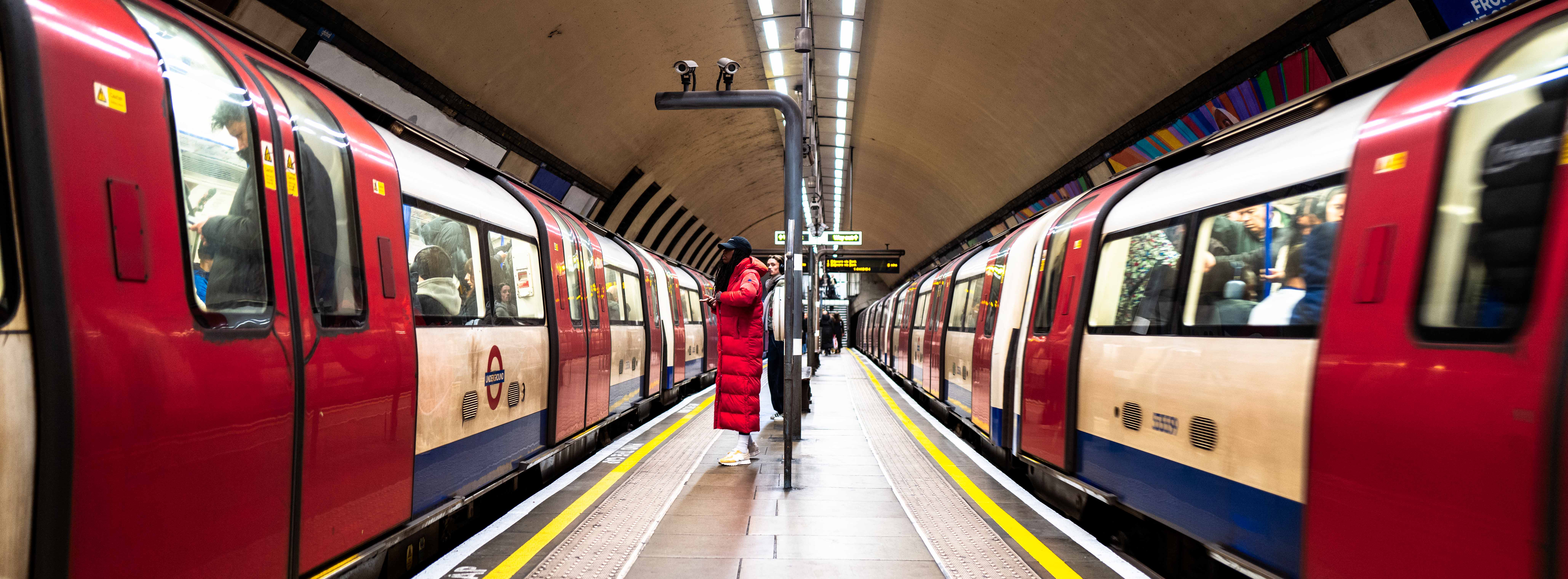 The red of her coat really connects with the red doors and pulls the whole shot together.