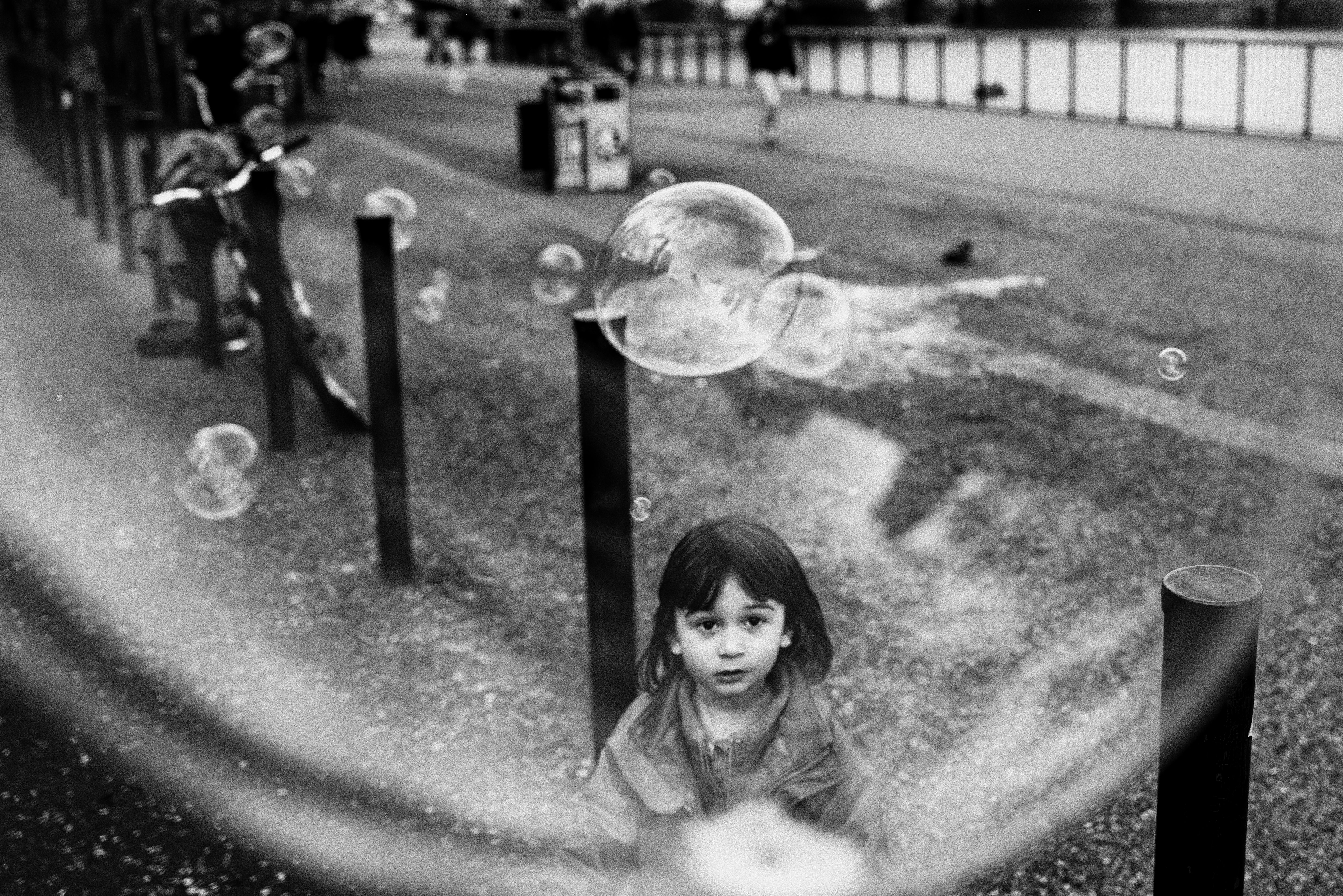 Soap bubbles are magic for children and you have certainly captured the precious moment.