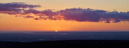 Taken a little later in the evening from slightly higher up the hill. The sun is just emerging from the cloud bank.