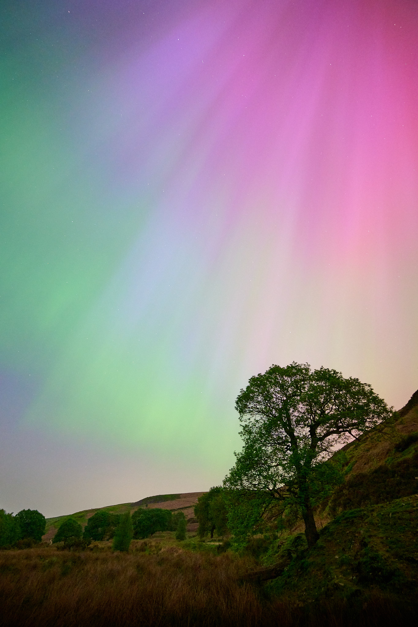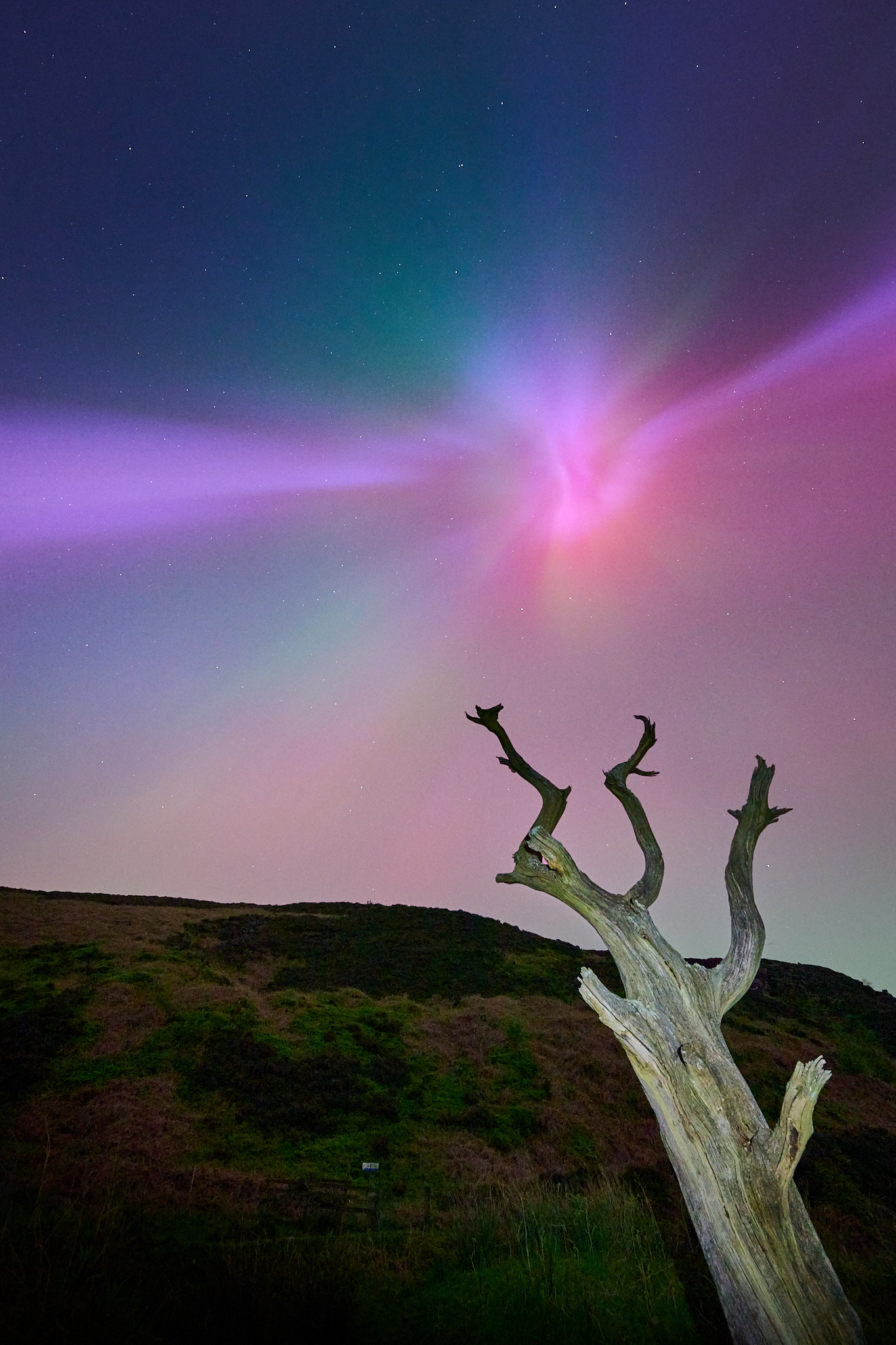 Amazing. Nobody will believe they're real! The tree looks like a Harry Potter wand. My daughter rang me at 11pm to tell me to look, I was asleep. Couldn't see much from where I was and was so tired after a 3 day fishing trip that I gave up. Wish I had stayed with it now. I also wish it would have happened while I was sitting watching the night sky whilst fishing.