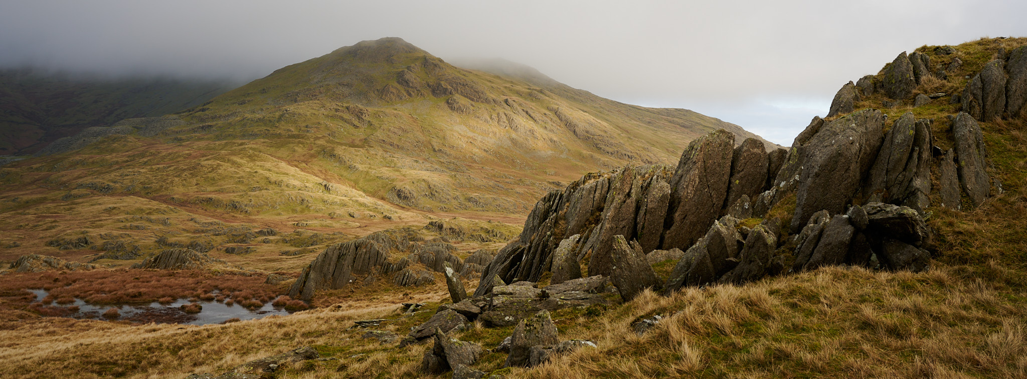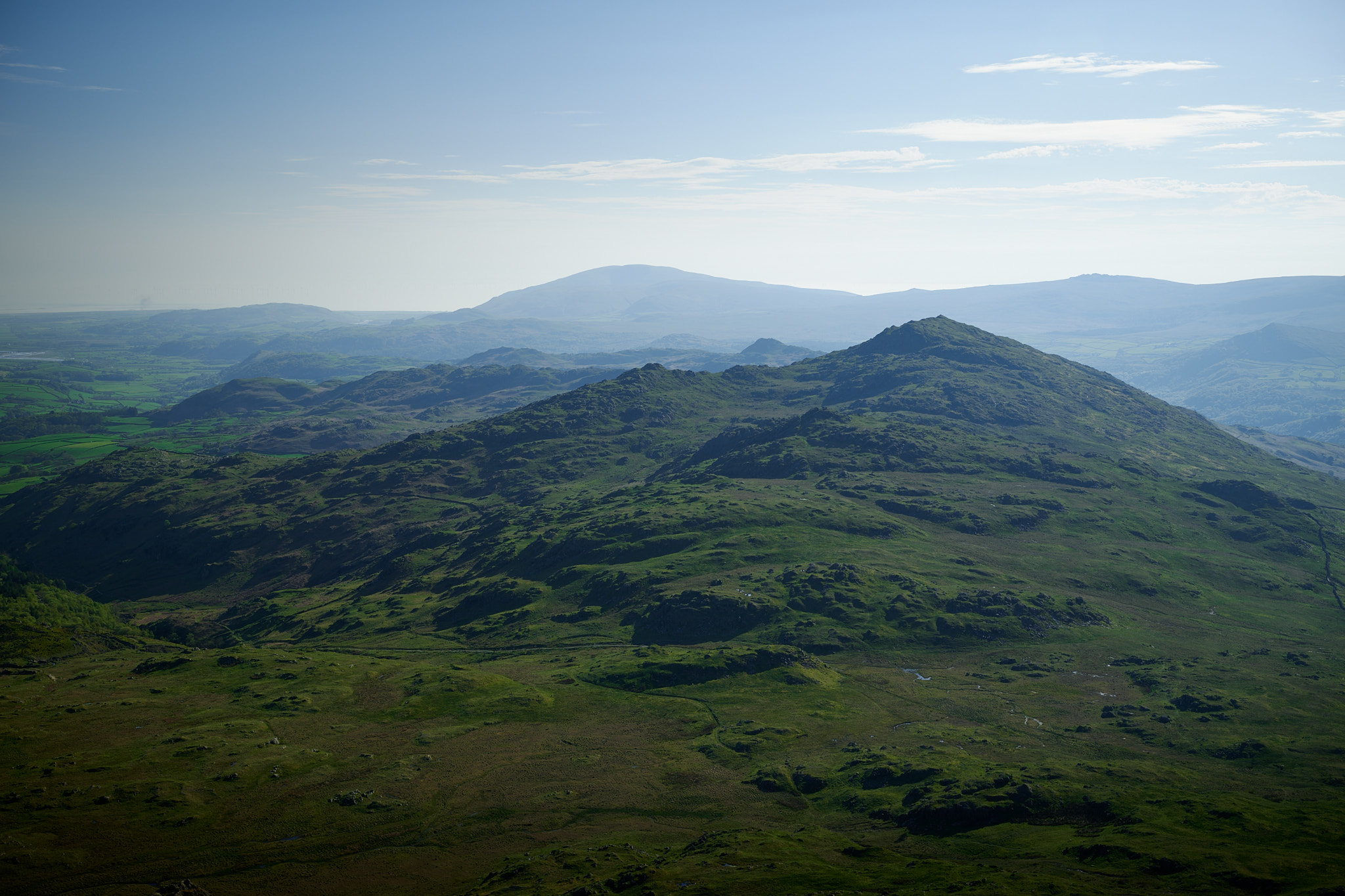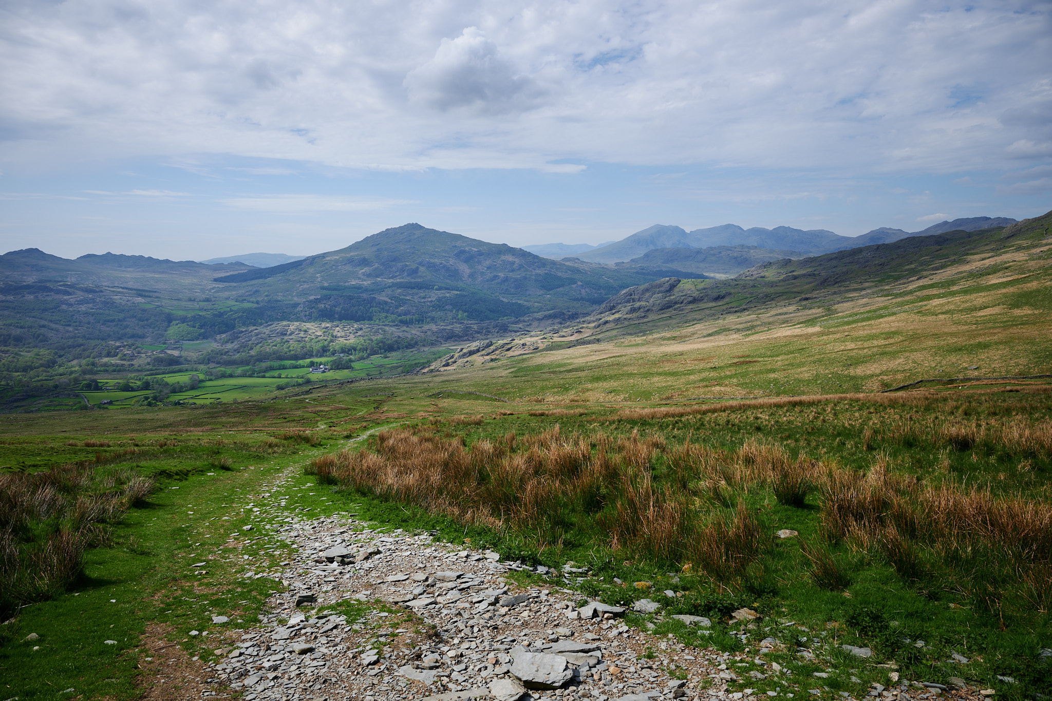 This was taken during one of many breaks I took on my way up the Walna Scar Road. The prominent fell in the foreground is Harter Fell, with the Scafell massif lurking in the background.