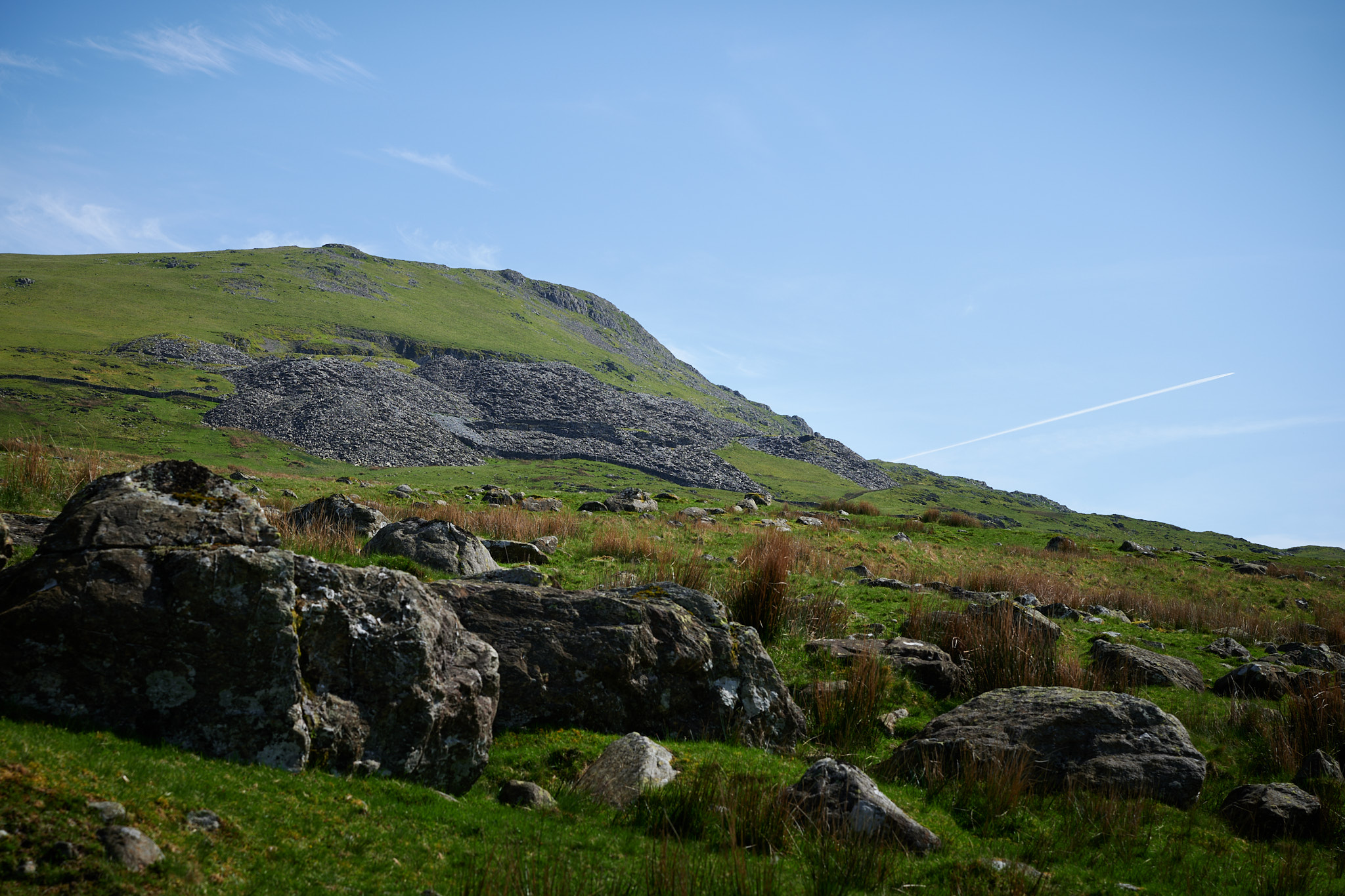 After reaching the summit, I was then pondering how to get back down. I had the options of retracing my steps back across the top to Walna Scar Road, taking a rather dubious looking (unmarked) route down the nose of White Pike (potentially ending up crag fast for my efforts) or simply walking down the grassy slope towards the slate mine on the lower flanks. I chose option 'C', after all, what could possibly go wrong? The picture doesn't really show how steep it was, but I took my time, planning and updating my route as I descended and eventually arrived at the abandoned slate mine.