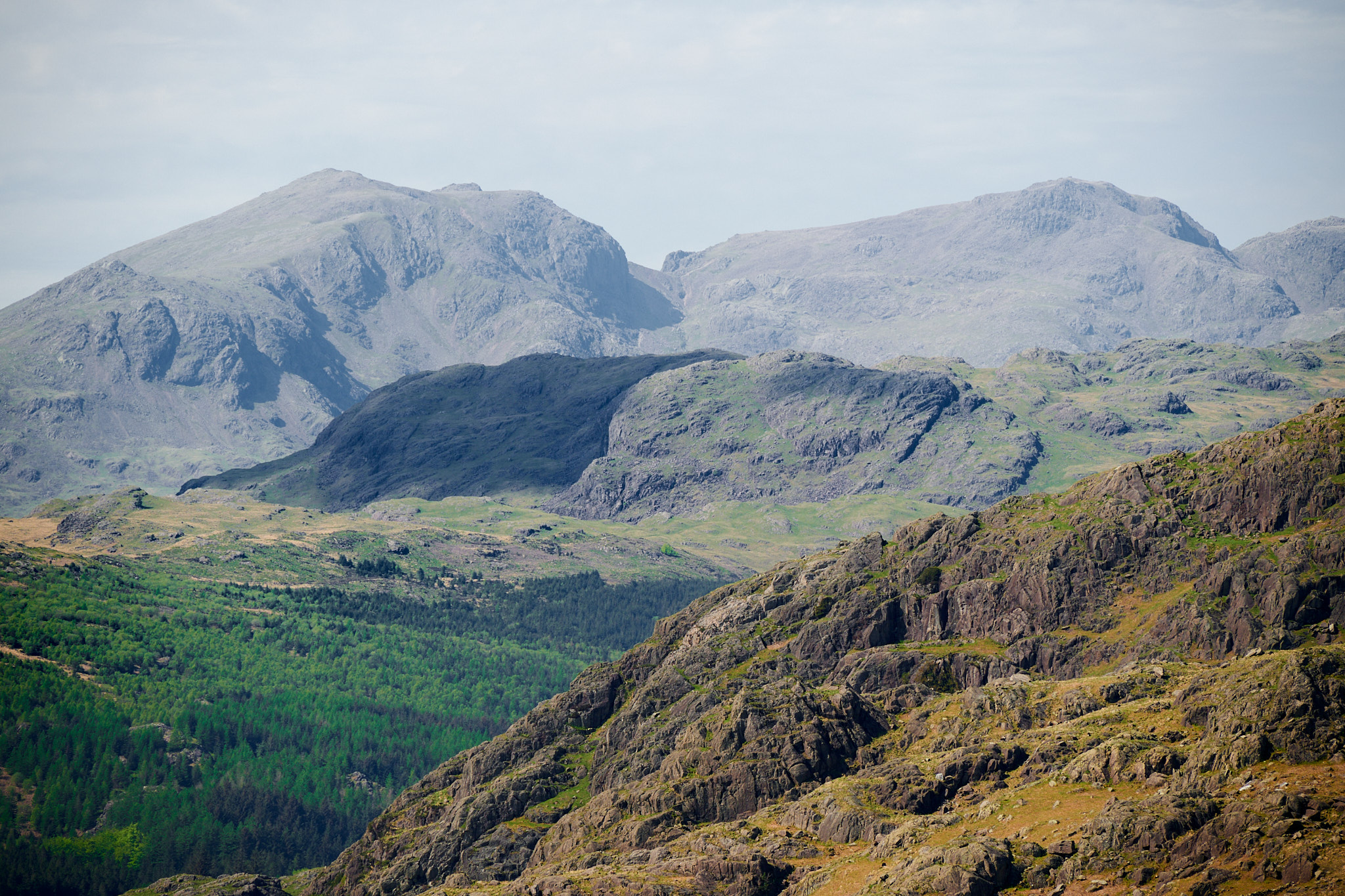 A closer look at Scafell (left) and Scafell Pike (right) through the 24-200. I think the shadow covered fell in the middle distance is Hard Knott.