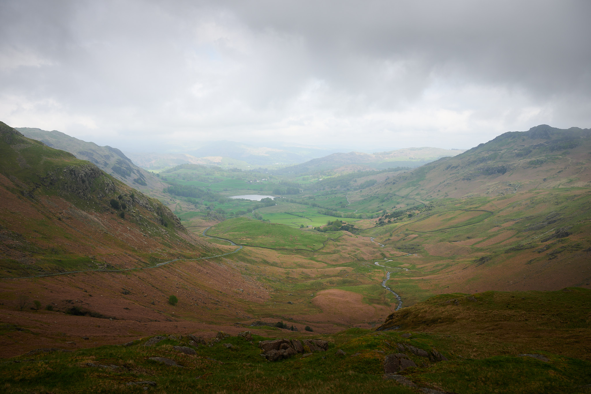 As I drove up the hugely enjoyable Wrynose Pass - a narrow, uneven road that winds its way between the Coniston fells and Pike O'Blisco, peppered with sharp turns and potential for sudden death around every corner - I spotted a fine view in the rear view mirror, causing me to find a safe place to briefly pull over and take a shot. My mum didn't see any of this as she had her eyes closed along most of the pass. I don't think she was enjoying that part of the trip as much as I was.