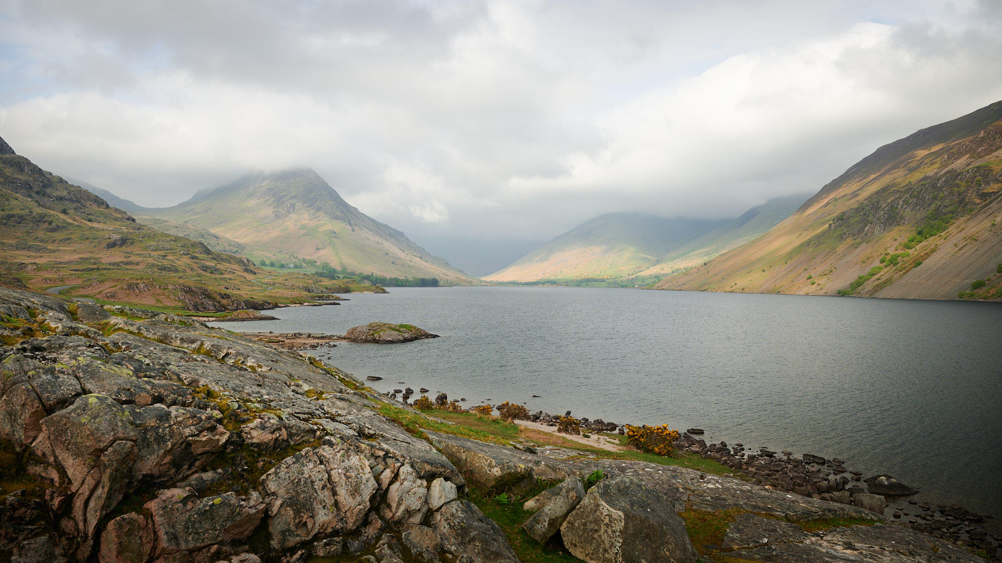 After another intermission the car, we found ourselves in Wasdale. Having been thwarted by the low cloud in both Great Langdale and Eskdale, I was hopeful that we might get something of a break out here at the foot of England's tallest mountain. This turned out not to be the case, so instead we settled for a sit beside Wastwater enjoying the screes and the general tranquility, because, weather aside (or probably because of it) the place was dead. While we were sat there in the early evening, the screes did get hit with some rather nice soft light.