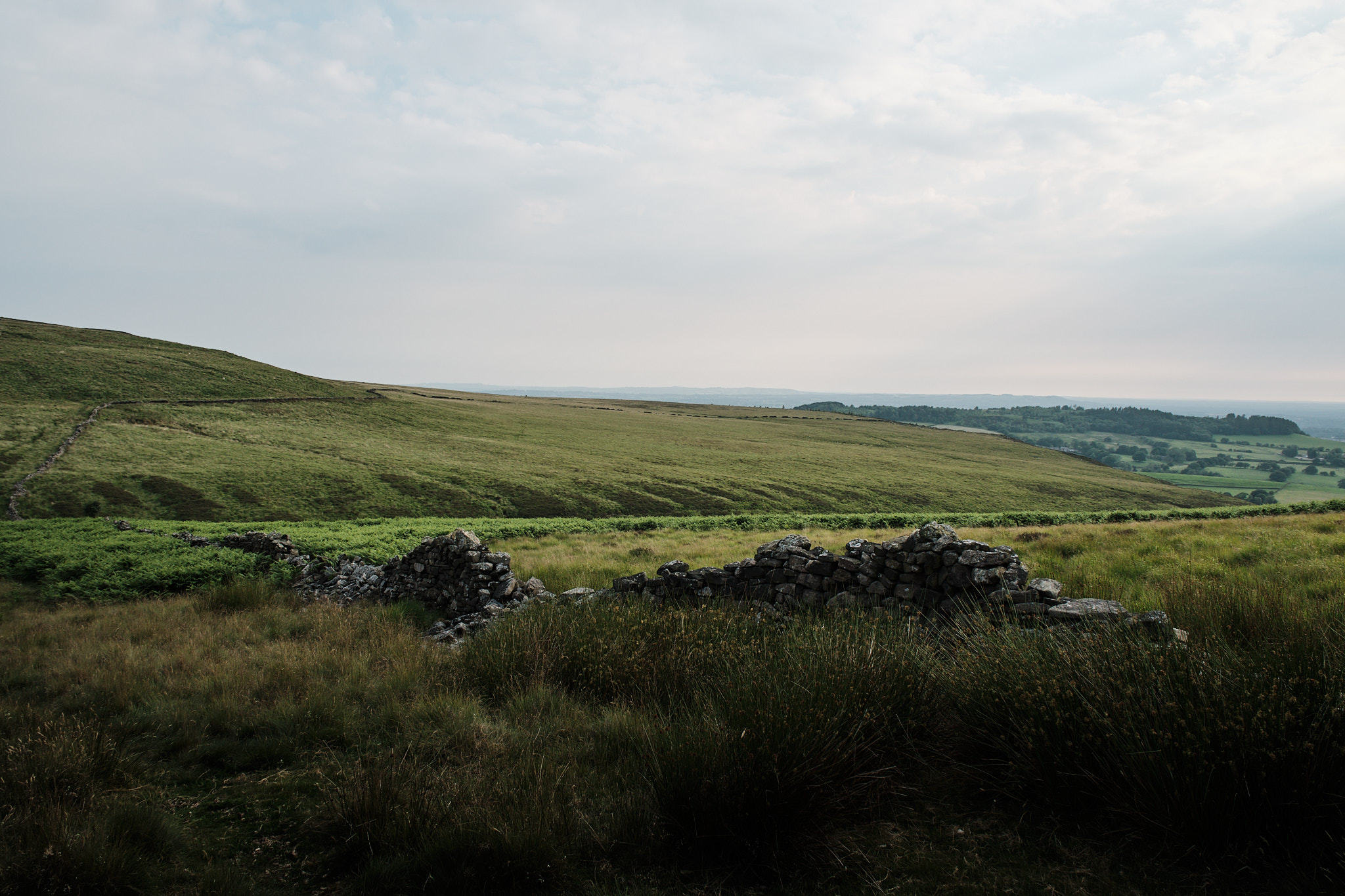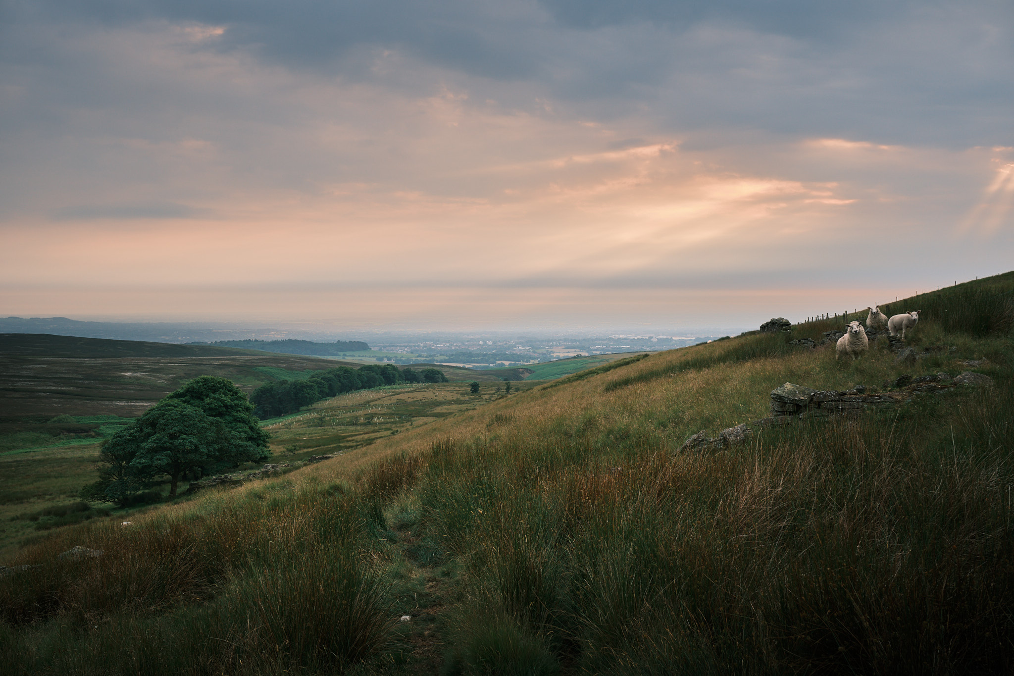 Following the path down the side of Great Hill and approaching the Great Hill Farm ruins, these three sheep paused in their relentless search for better grass to watch me warily as I made my way down. There was some good looking crepuscular action going on in the sky behind, but I didn't feel like I was really in the best place to take advantage of it.