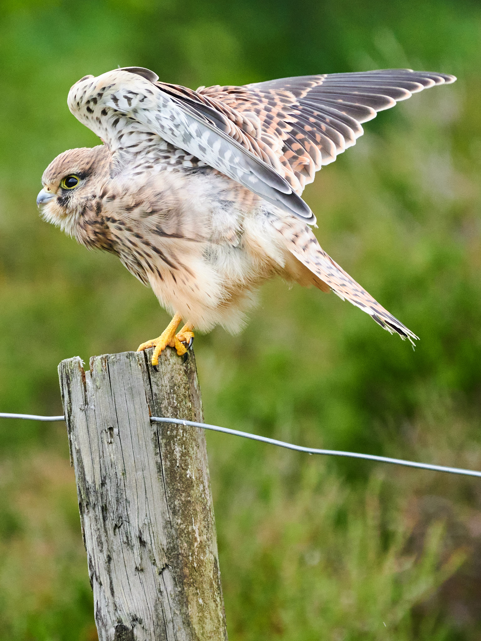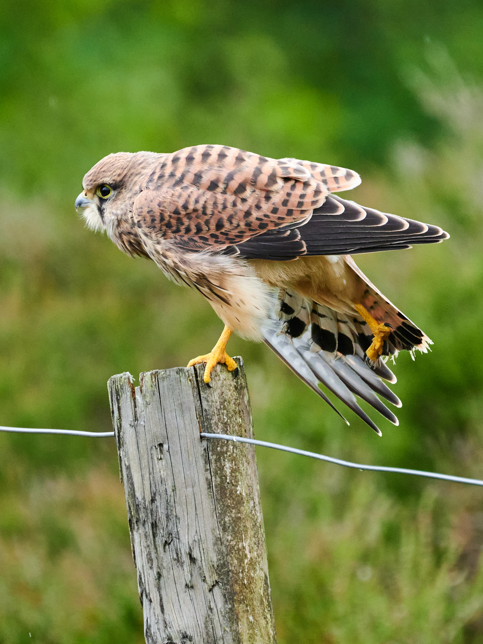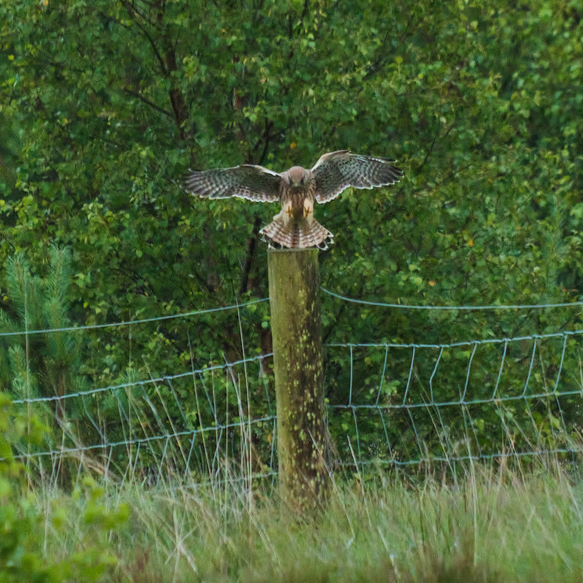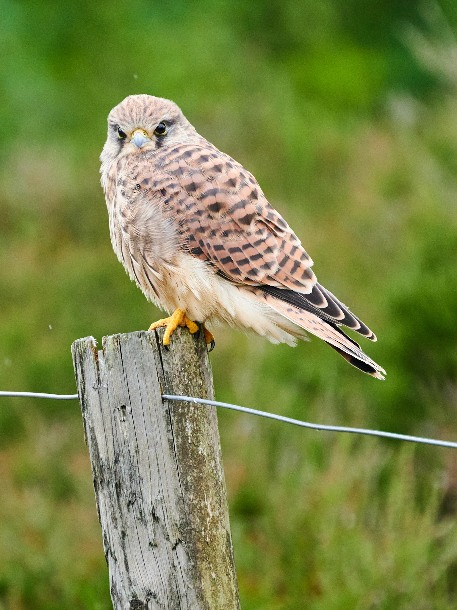 She stood on this post for quite a while. I was initially about 30ft away and crouching in the grass, but every so often (especially when cramp set in), I'd try to shuffle forward and get a bit closer. Eventually, I got to within about 20ft where this shot was taken. It's probably the best from that particular encounter.