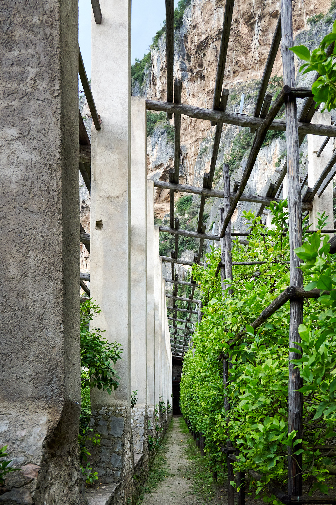 The cultivation of lemons was once an important industry here, before synthetic citric acid made the cultivation of lemons for industry obsolete. Just a couple of these greenhouses remain. In the winter the roof is covered and the sides closed. The Limoncino they make is quite nice.