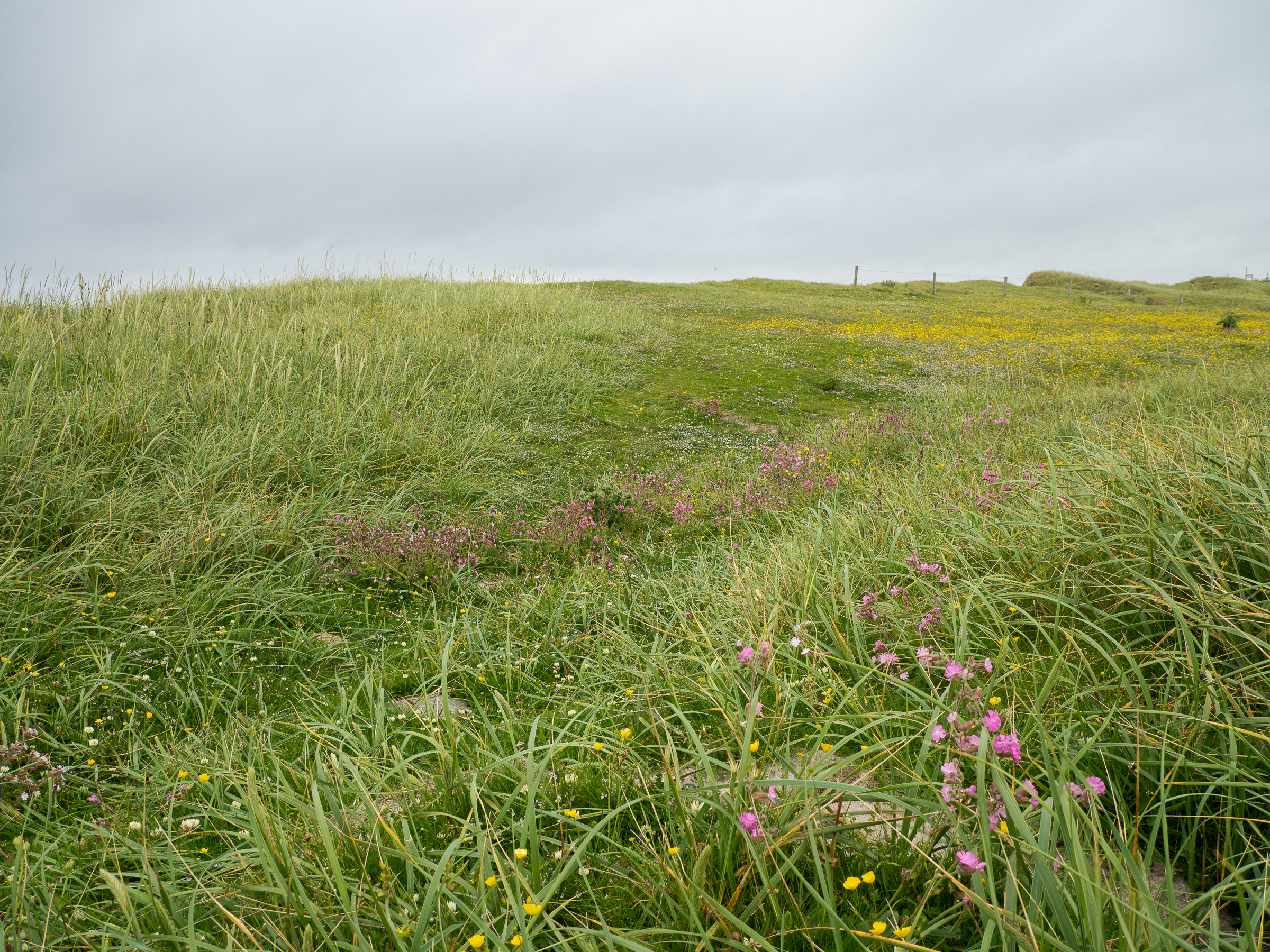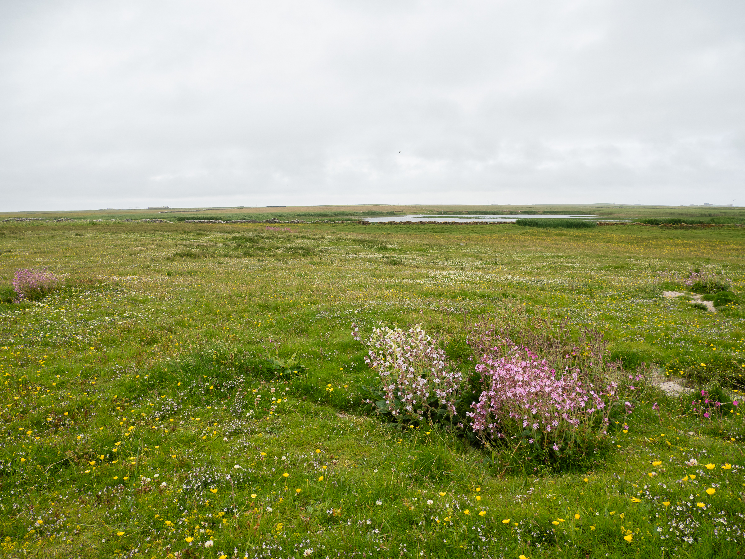 Machair is a rare and beautiful habitat found in a few Scottish islands. It comprises fertile shell sand soil and damp patches with a multitude of wildflowers, lying just behind the coastal dunes. Mostly found in the Outer Hebrides, there are also a few patches in Orkney, mainly on Sanday.
