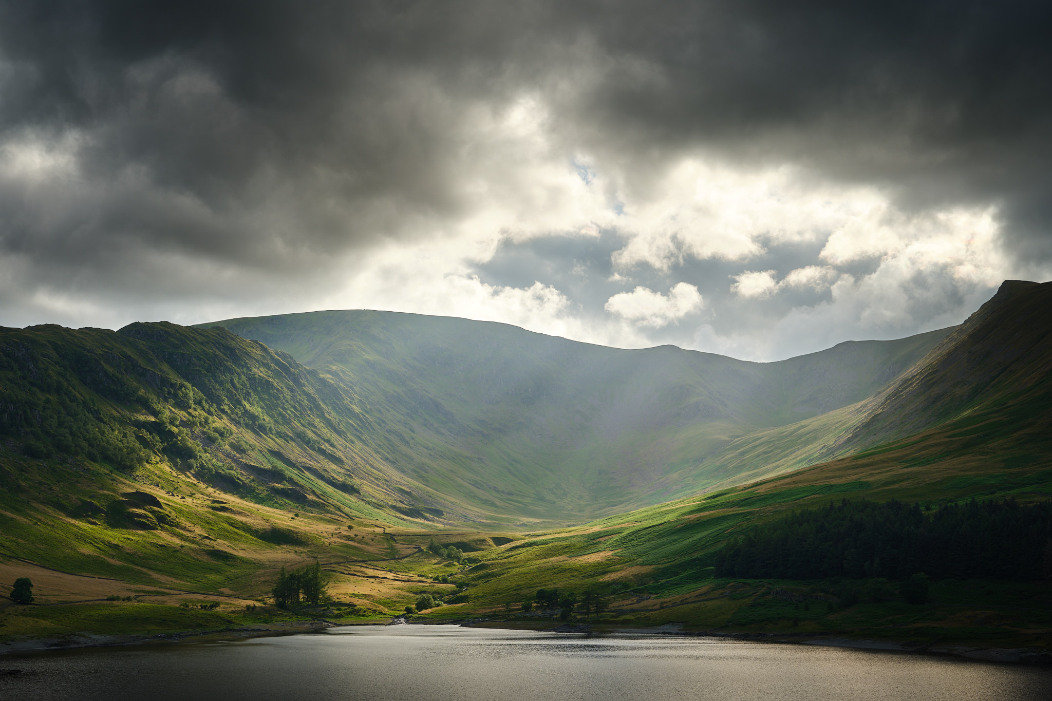 Having spent all afternoon in overcast conditions, it's no surprise that as I was driving away from Mardale Head the clouds broke and the scene was lit with beautiful light. Fortunately, I managed to find a spot to pull over and jumped out with the camera. to take this (and several similar) shot. It's kind of ironic that I spent all day lugging a heavy kit including a tripod up to the tarn, only to get (what I think are) the best pictures of the day leaning on a wall about 20ft away from my car.