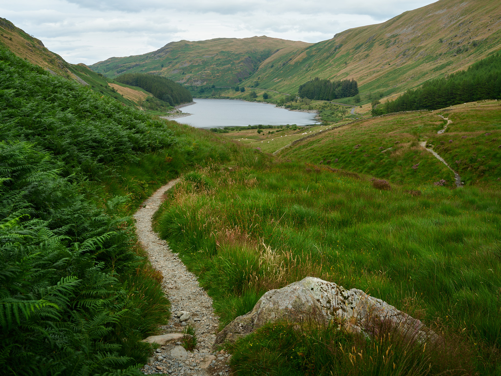 This was taken at an early point on the path, where it's gently rising below Harter Fell. The lake in the distance is Haweswater.