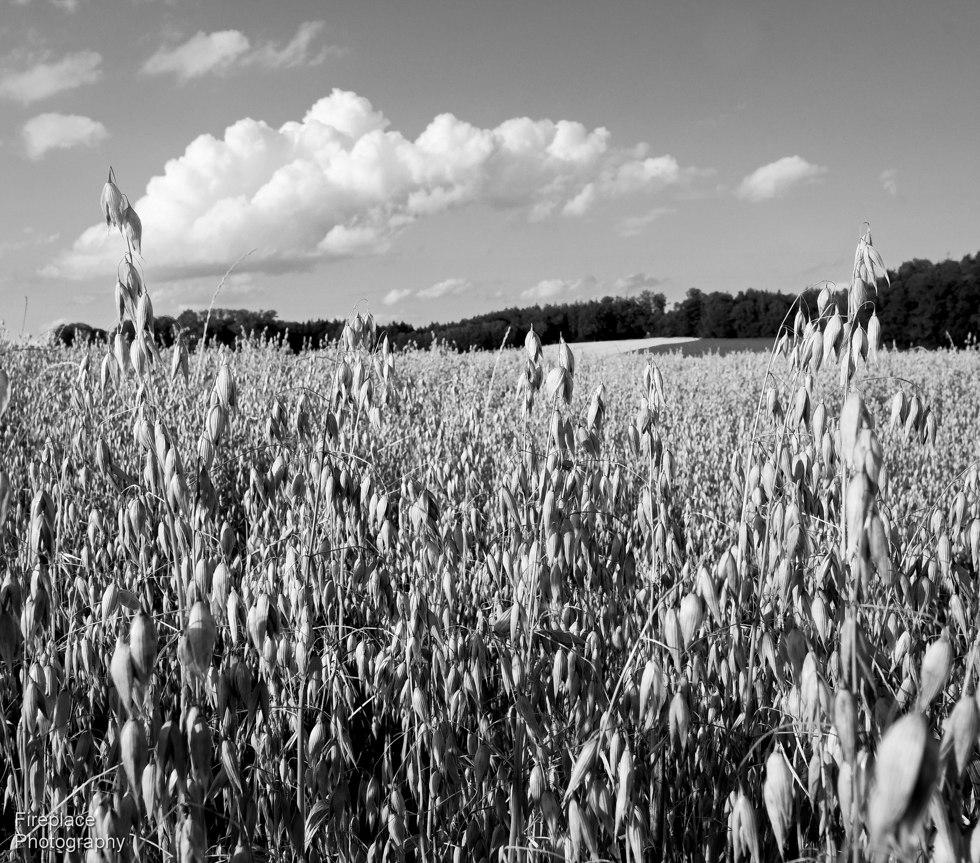 A short walk this week by a field of oats and a detail shot of a machine called a "Grubber" in German.