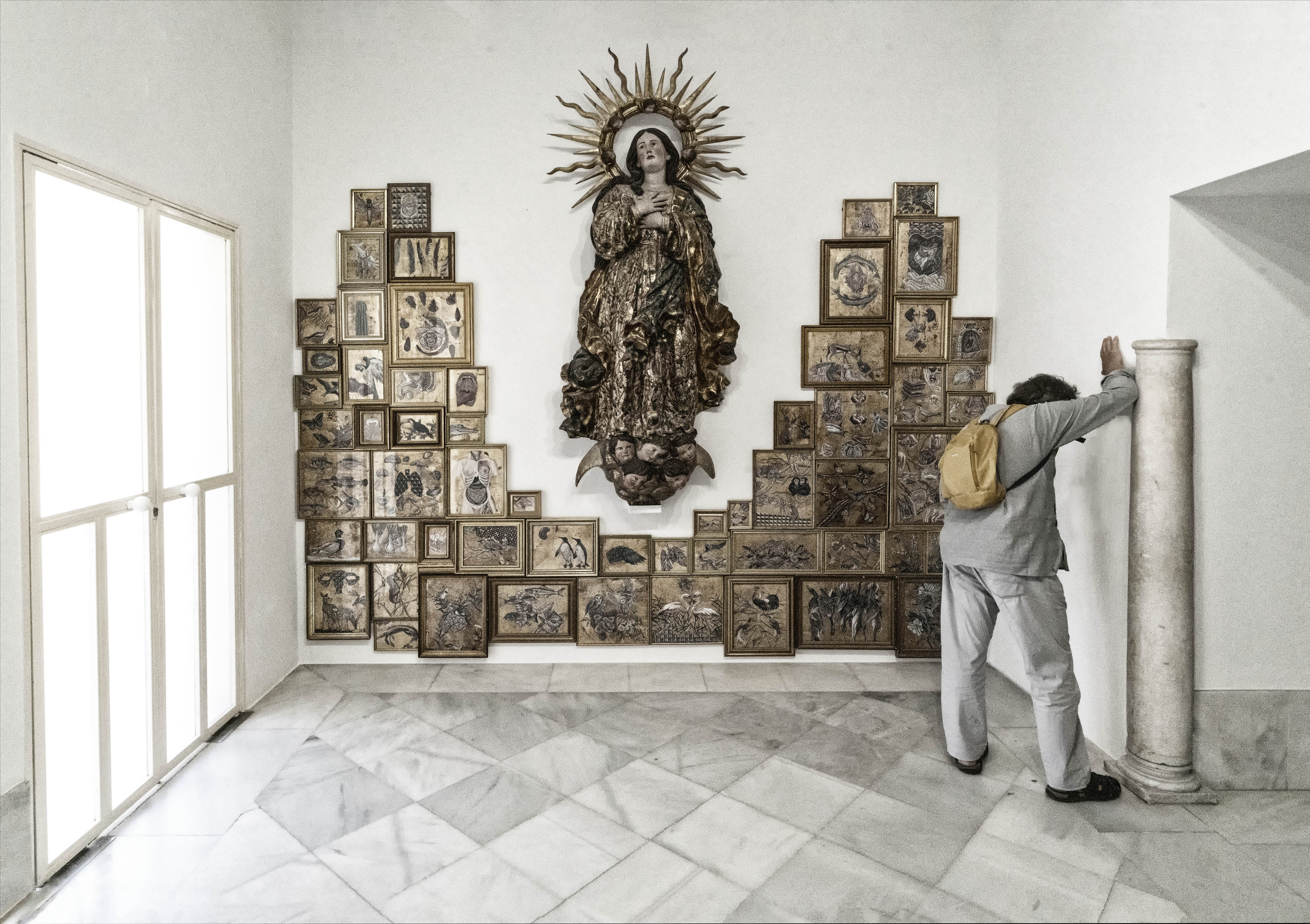 What an intriguing image. The 'artwork' itself is weird - no idea what's going on there. Then your choice to include the figure... genius.