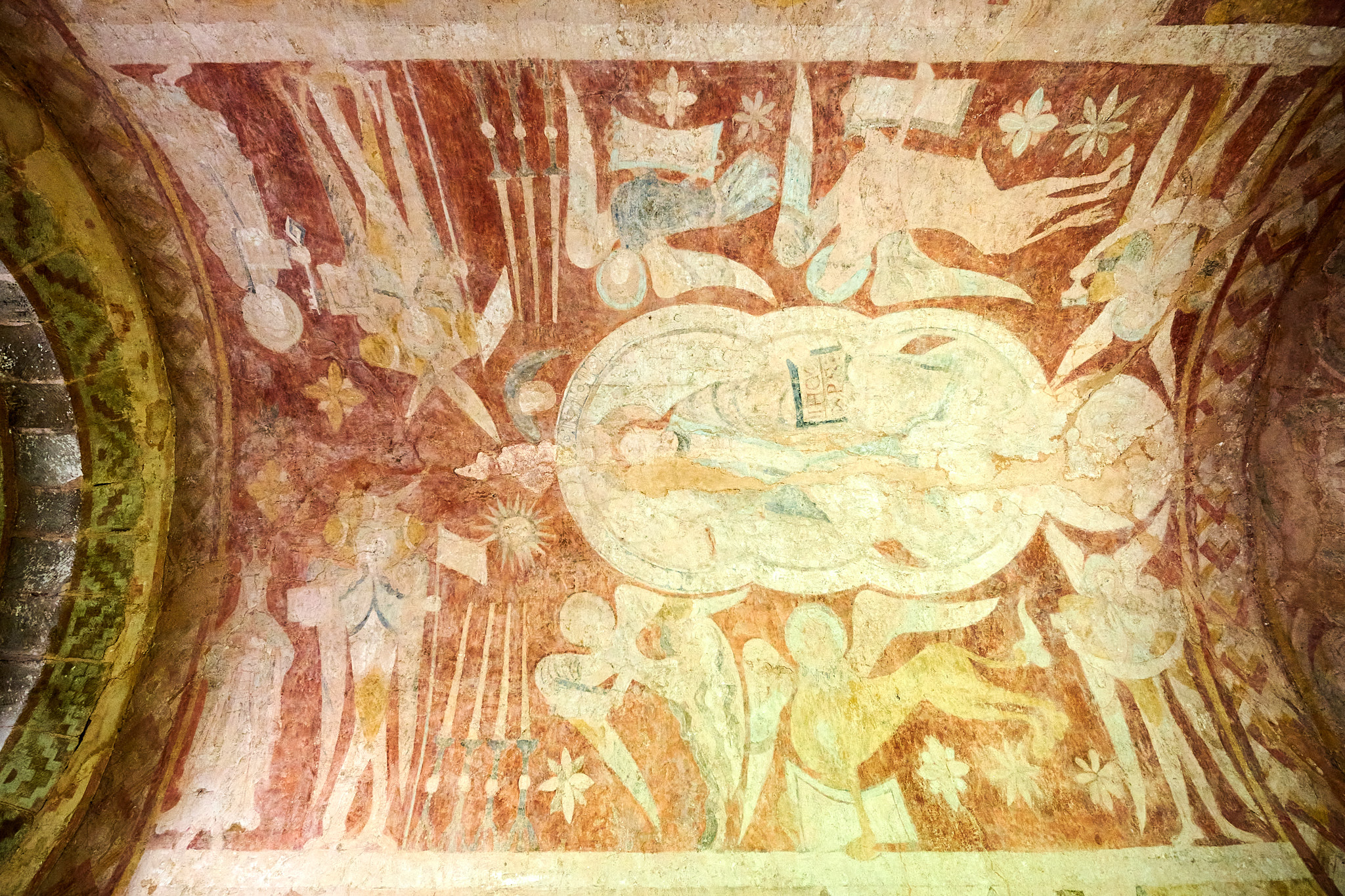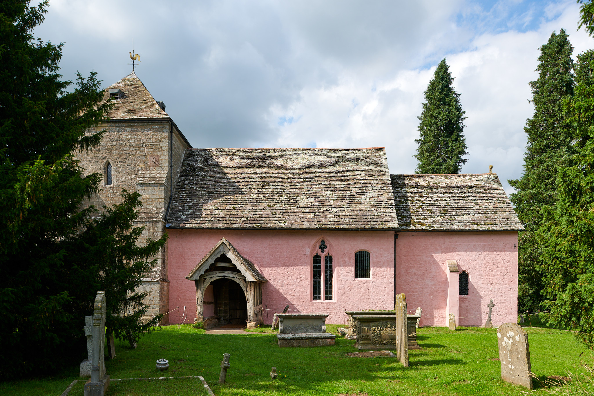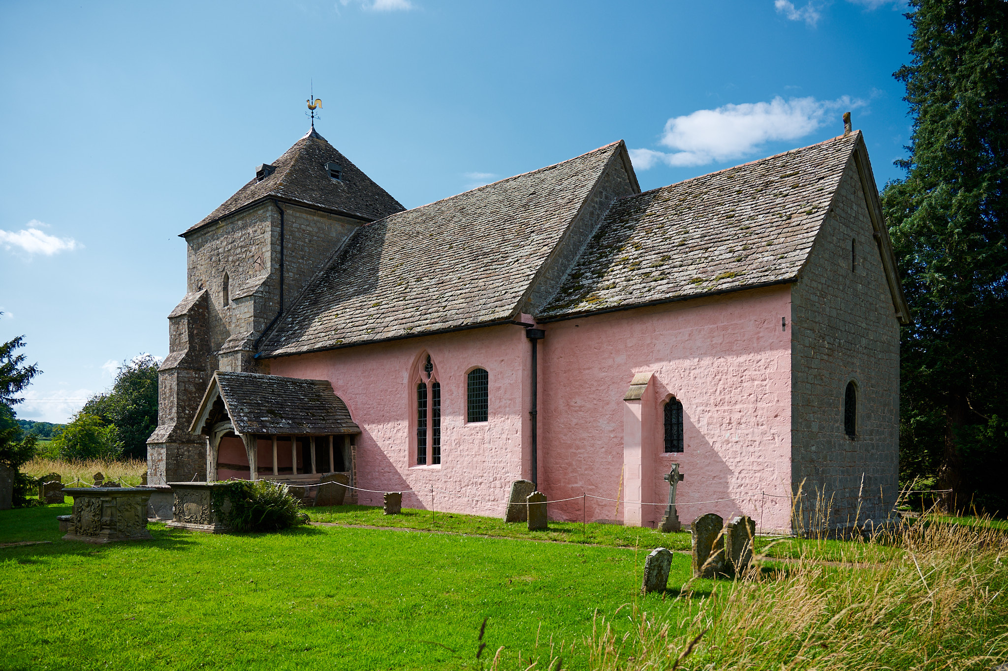 I often use Google Maps to pre explore area where we are staying. I was clicking on a few likely monuments of interest, when I came across, this church, St Mary’s Church, Kempley, far from any village hidden, away down a country lane. What is remarkable about this Norman church is the fact that it is one of the very few churches in Britain, where you can see frescoed walls. They like many others were covered by whitewash during the Protestant Reformation, but the were rediscovered and uncovered in 1872.