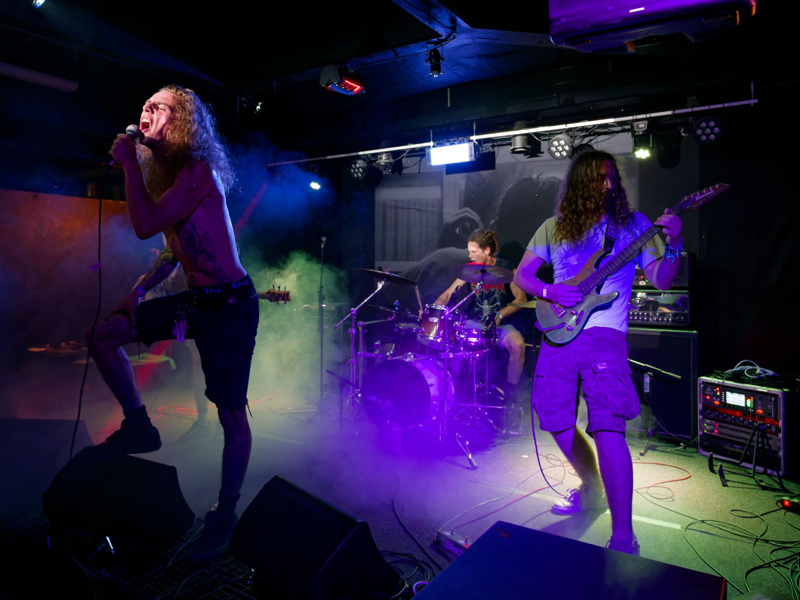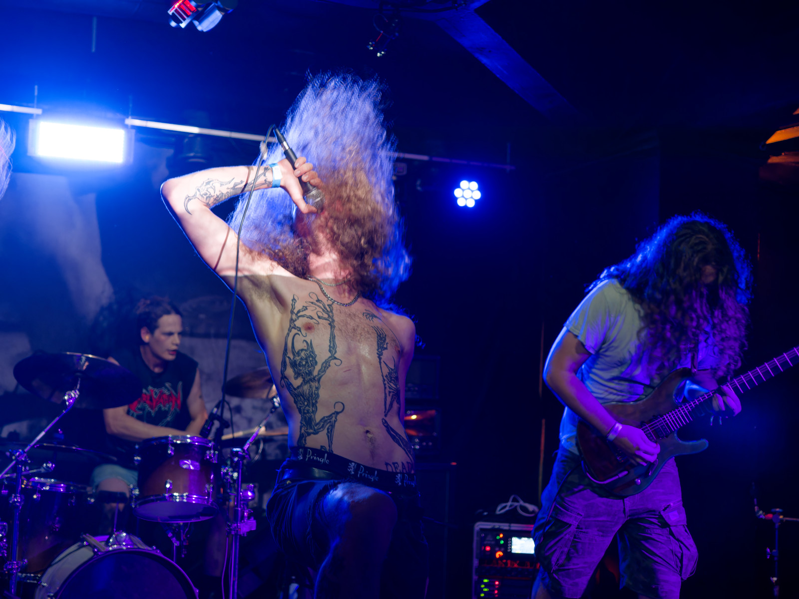 ATVM from London. Crazy band, music was black metal mixed with fusion or jazz elements, singer was very active, running into crowd and climbing to bar counter...