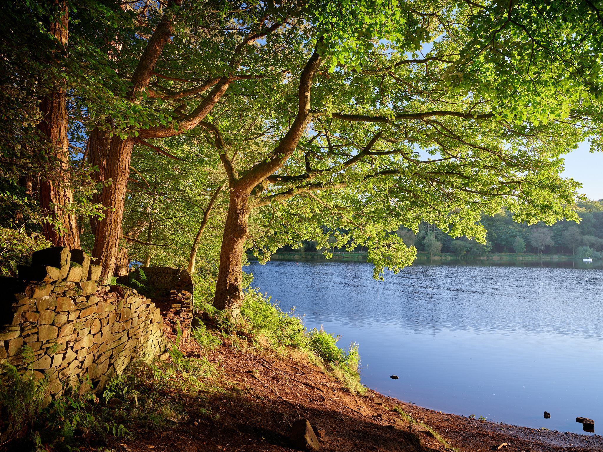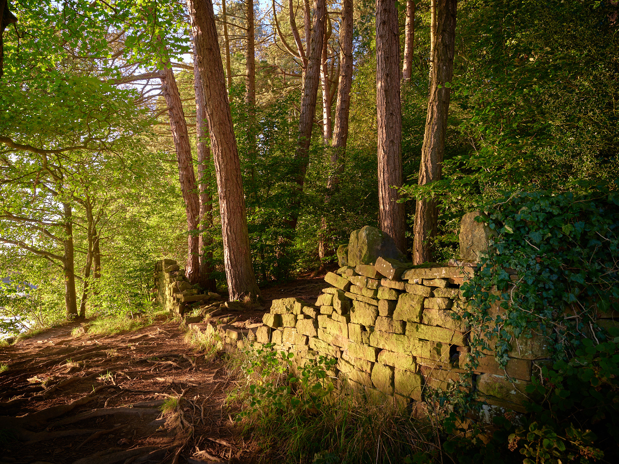 The gradually disappearing wall that encircles the reservoir. I liked the way patches of light were illuminating the wall and the various bits of flora trying to reclaim it. The main woodland path is beyond the trees way off to my right in this shot.