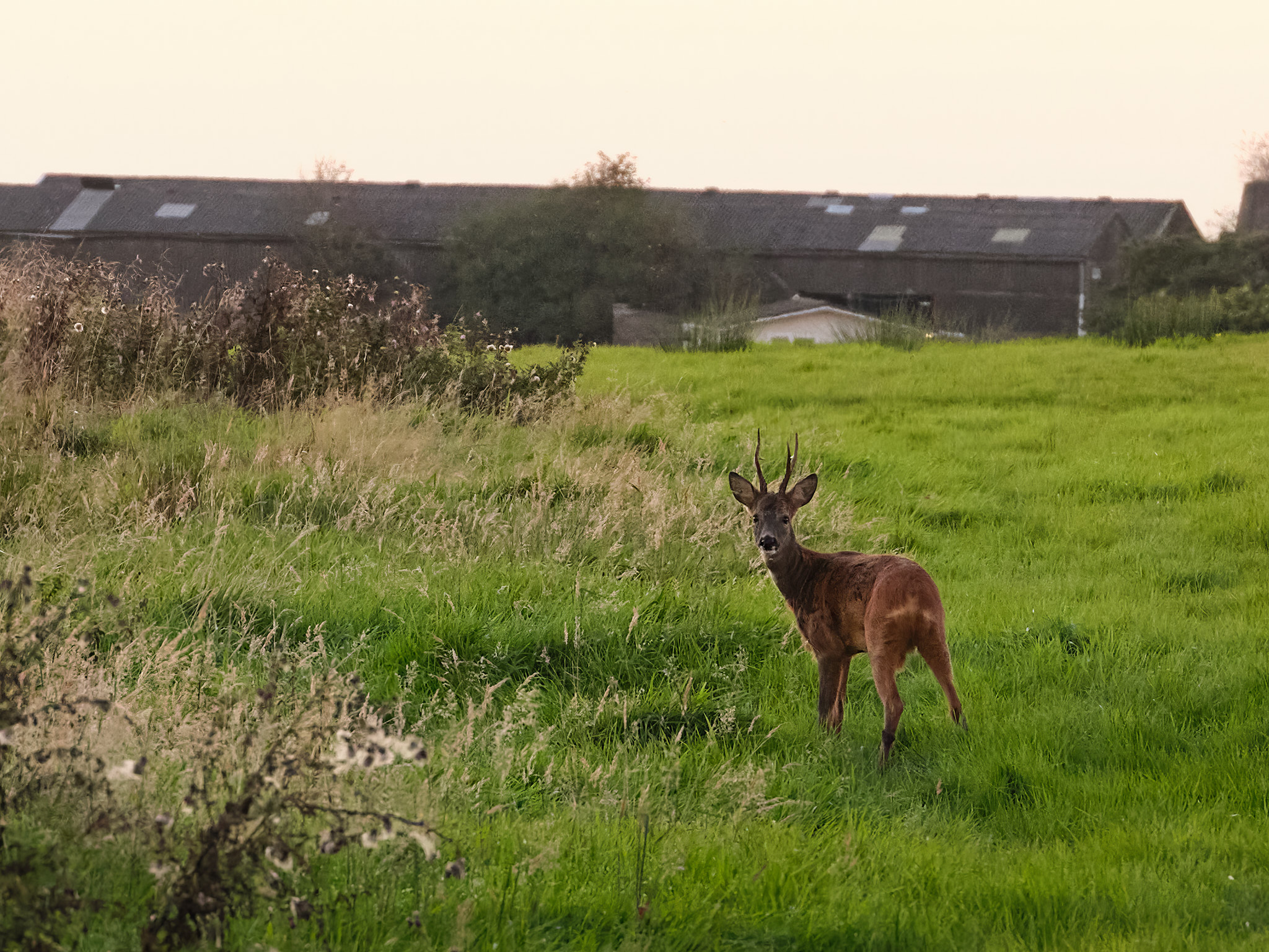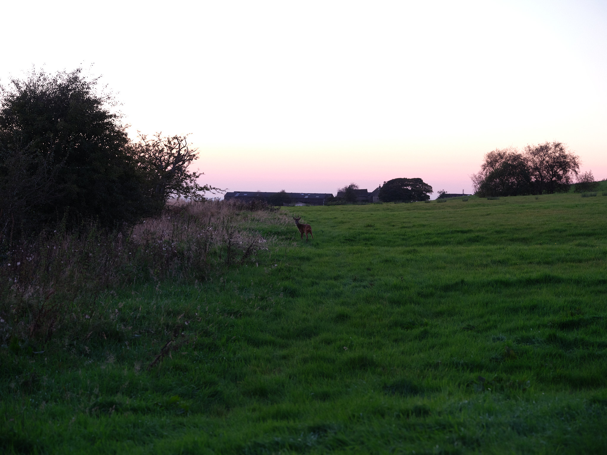 As I crossed the field I stumbled across this little Roe Deer buck. Initially, he was a bit closer to me and completely ignoring me, but unfortunately, I just had the 32-64 on the camera and the 45-100 in the bag, but with my tripod in one hand, making it impossible to swap lenses without putting it down. This drew his attention to me and he started to nonchalantly move away as I attempted to swap lenses without startling him too much. By the time I was ready for the shot he was quite some way from me, even with a 100mm lens, but I took the shot anyway, cropped it and then ran it through Topaz to upscale it. Here's the result.