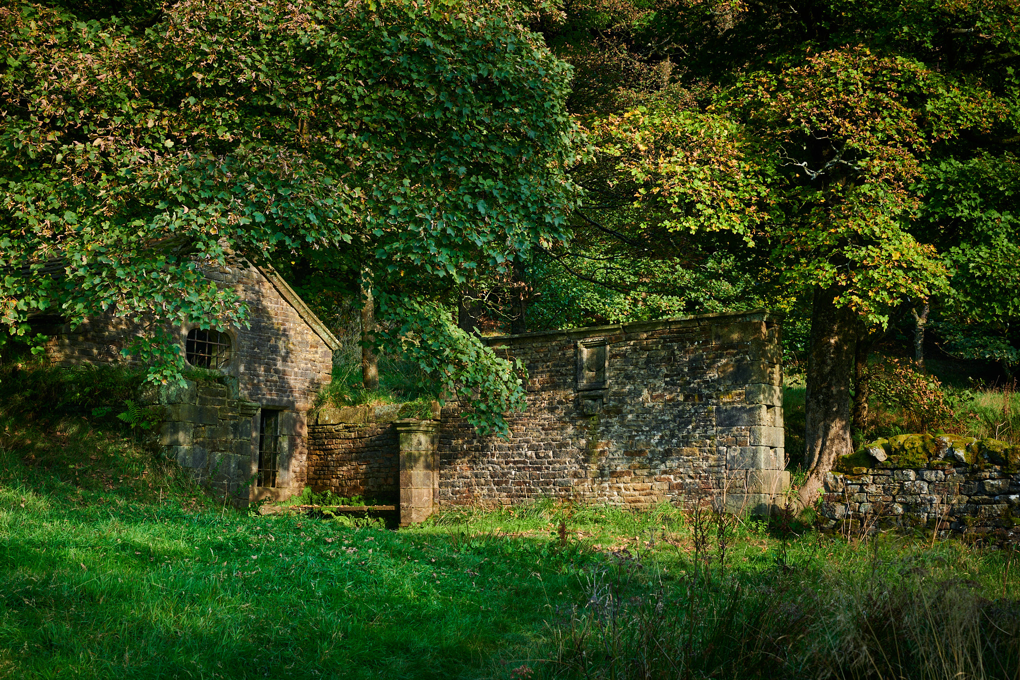 You could easily miss the well house as you walk through the ruined hall site because it's tucked away from the main path and largely hidden by trees. Perhaps this is how it survived Liverpool Corporation's demolition team over 100 years ago?