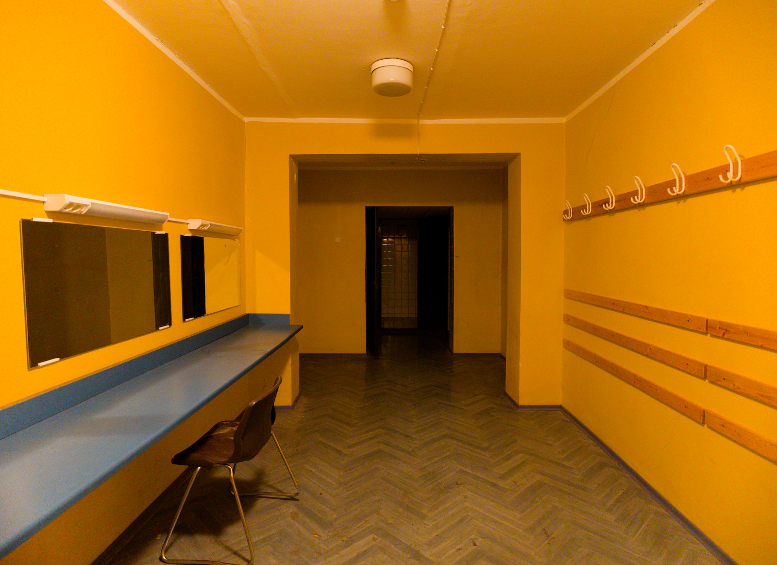 Backstage room. Looks more like gym dressing room than hosting place for stars.