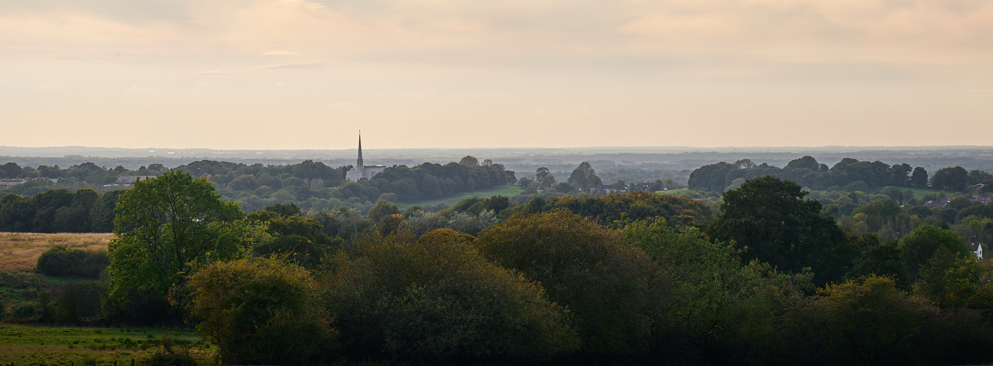 Just down the hill from the church there's a small gate leading into a field. The view from there looks across the North end of Chorley, featuring the iconic Mormon Temple.