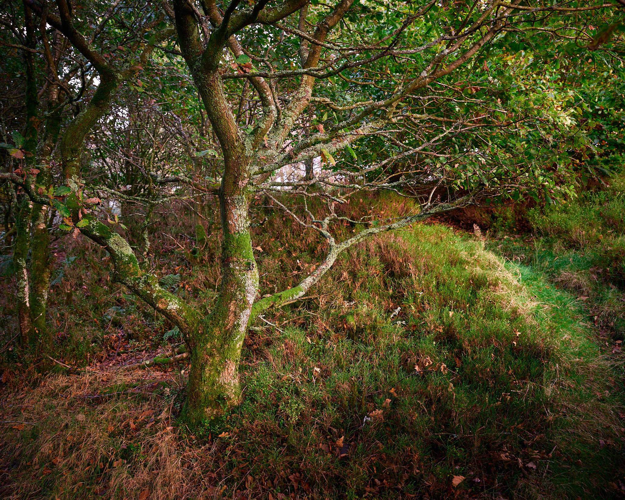 My plan was to set up a sunset shot at the pigeon tower, but as the sun sank into the swirling sea smog, sucking any semblance of saturation from the scene, I realised that wasn't going to happen, so I headed down an unfamiliar path into the woods, where I found this quite nicely lit tree.