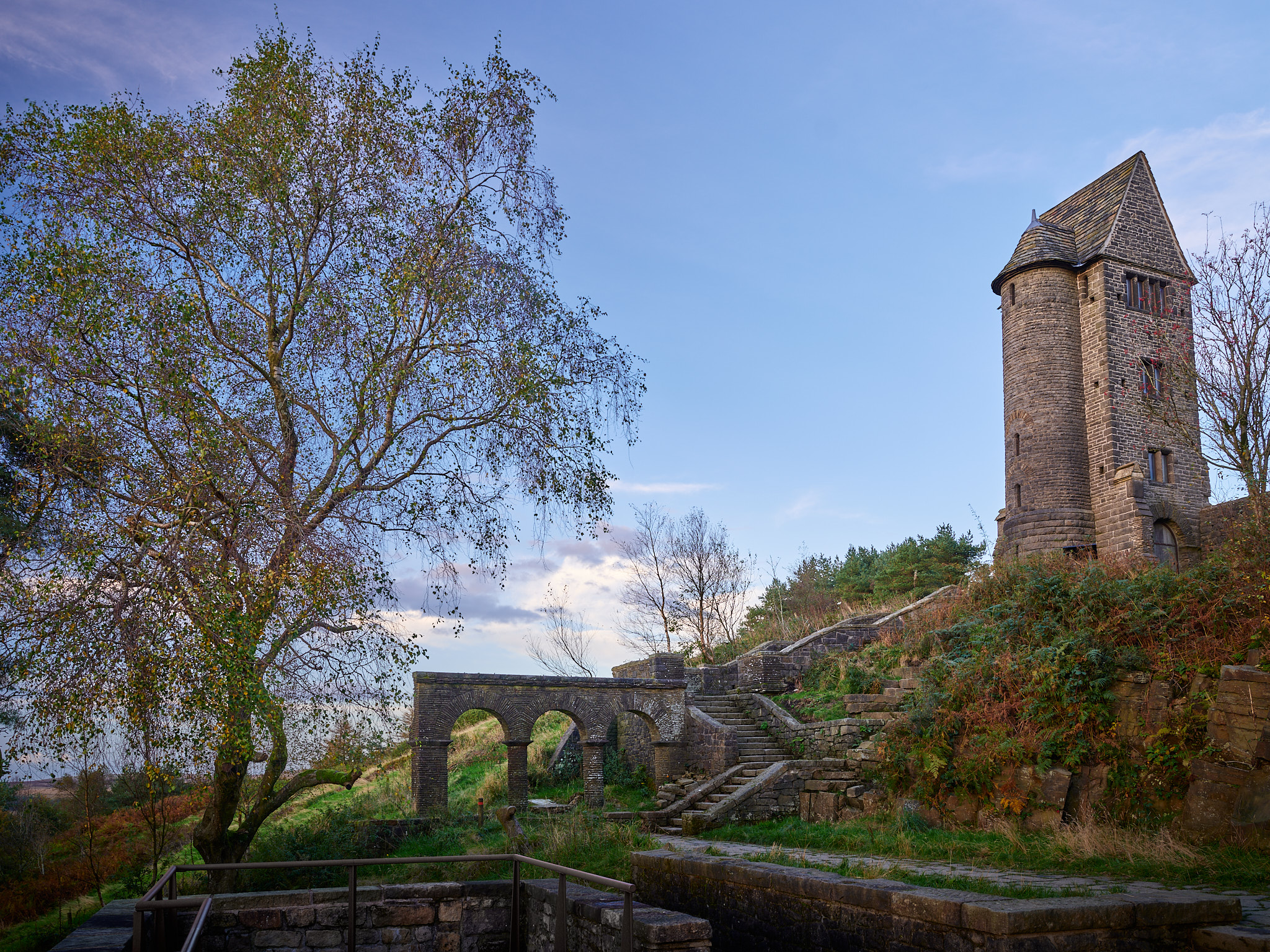 With the weekend behind me, it was a matter of finding evenings after work where the weather wasn't abysmal, so I could head out to make the most of the few remaining weeks before the clocks change and evening walks become far less likely. On this occasion, the conditions were looking good for a nice sunset, so I decided to visit Rivington Terraced Gardens, another spot I haven't been to for a while, with a particular sunset shot in mind.