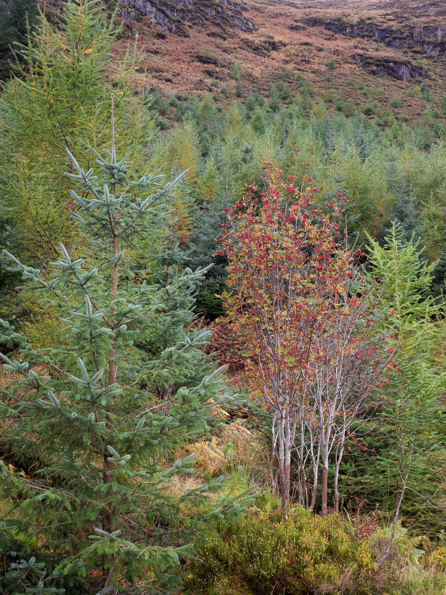 Took a wander up to Glentrool this afternoon hoping for some autumn colour. But the oaks are all still stubbornly green, and the birches are just dropping brown leaves without much effort at making themselves beautiful. There were however LOADS of rowan berries, as there seem to be everywhere this year.