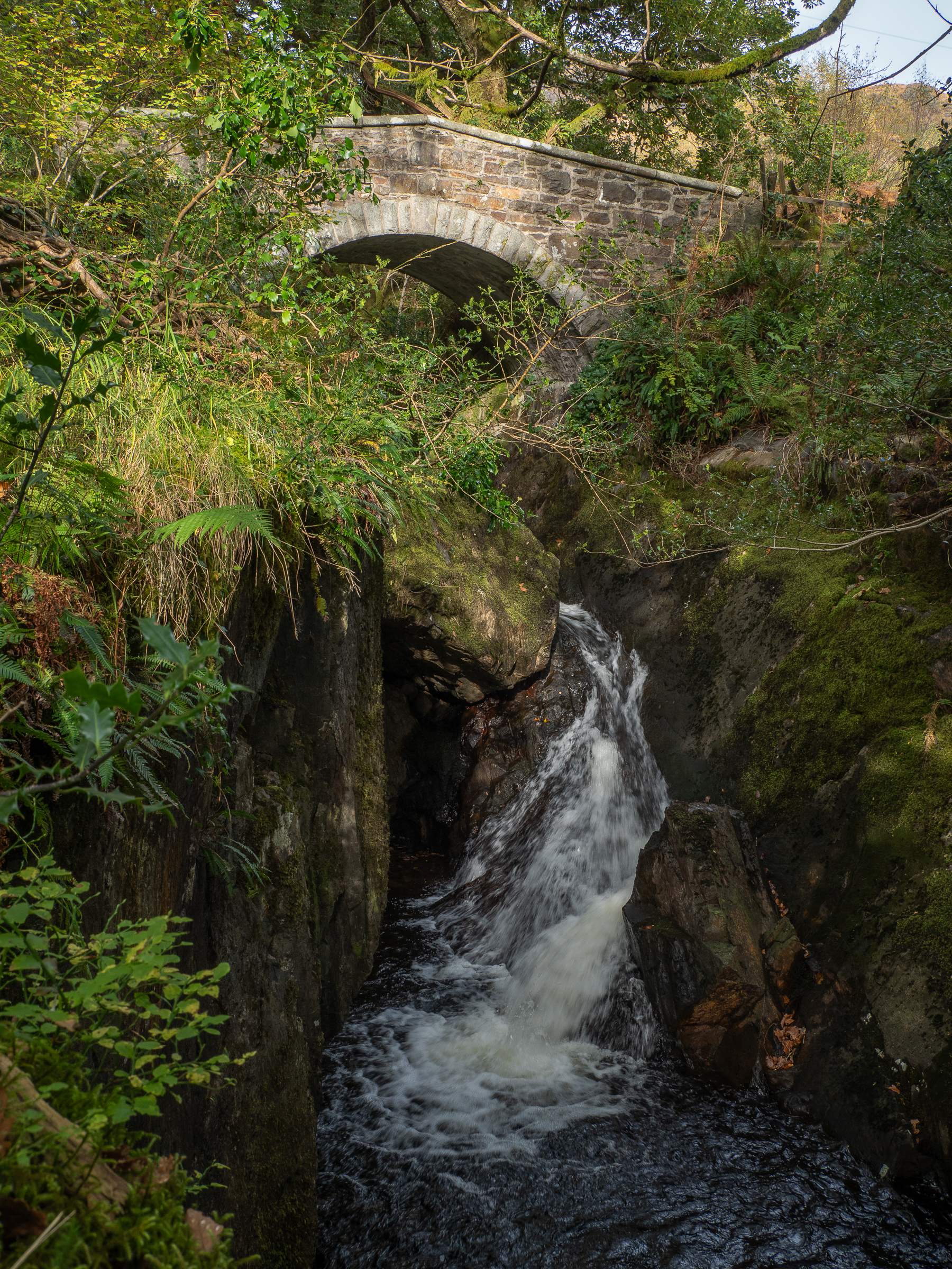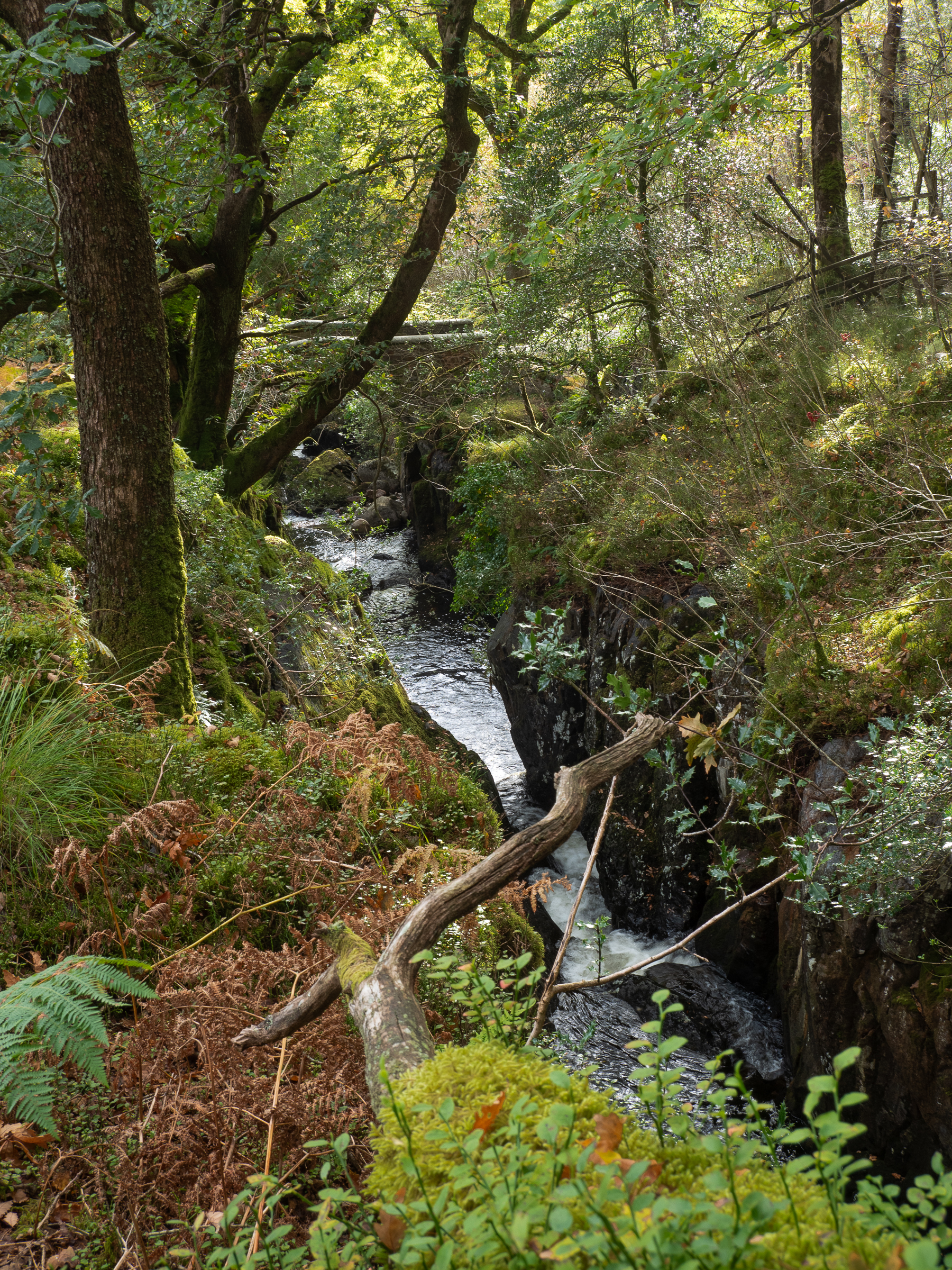 The waterfall gully is very picturesque, but finding a good - safe- viewpoint is near impossible. Hence the intervening twigs, bilberries etc.