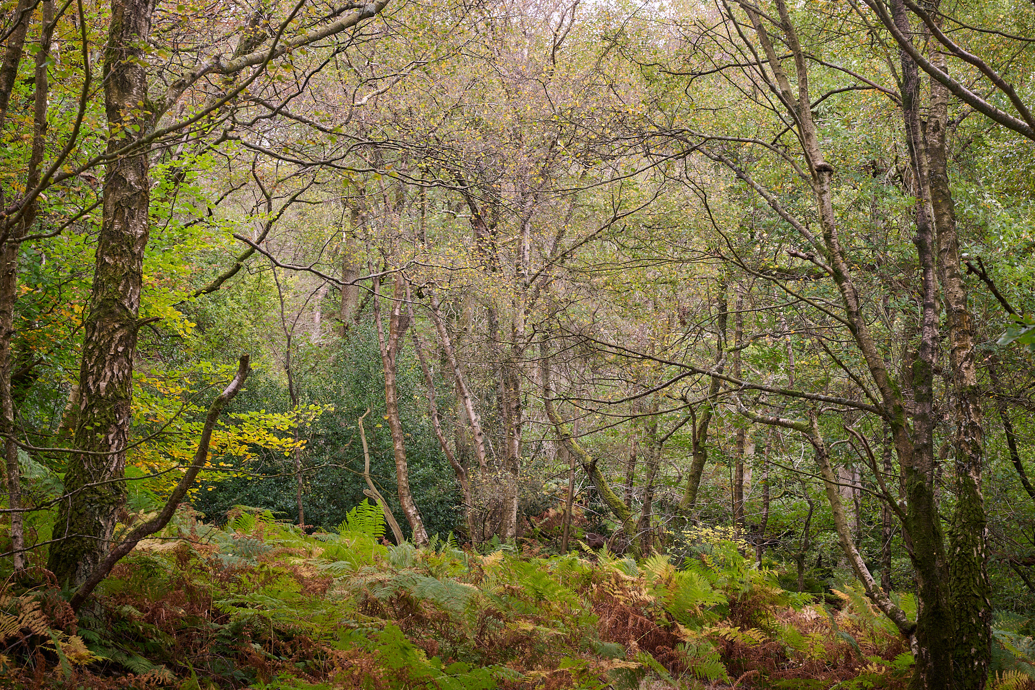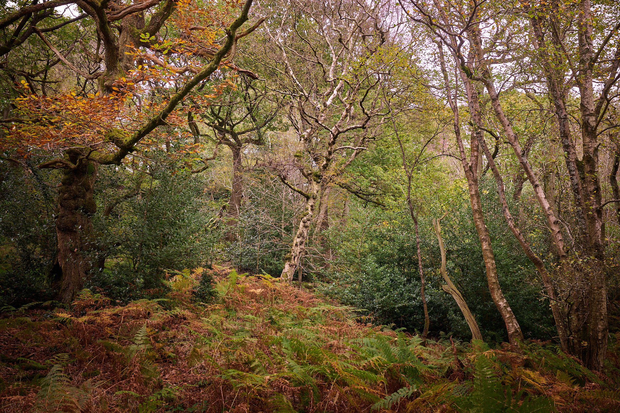 For me though, the real highlight was a small section of woodland about a mile from where I started where the selection of trees changed and the undergrowth thickened up with ferns on the cusp of donning their winter colours. All of these pictures were taken in this location, within a few feet of each other, it's definitely going to be worth returning here over the next few weeks, weather permitting.