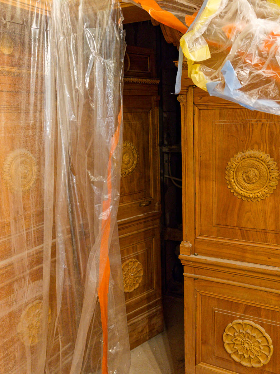 Secret door in this room, by this door servants could come in. There are reconstruction/restoration works going on.