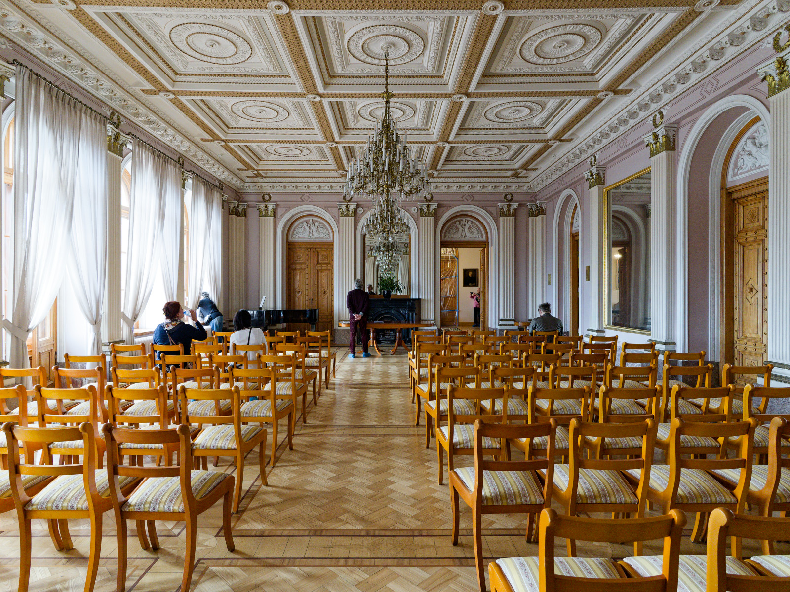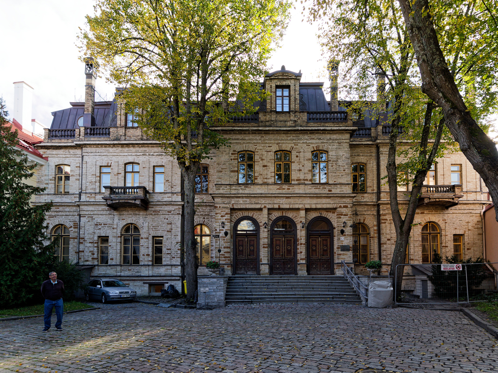 View to palace. It was constructed about 150 years ago. In 1911 it was sold to literature society, in 1946 it was given to science academy and it belongs to science academy to this day. Probably thanks to such educated owners it is well preserved in its original state.