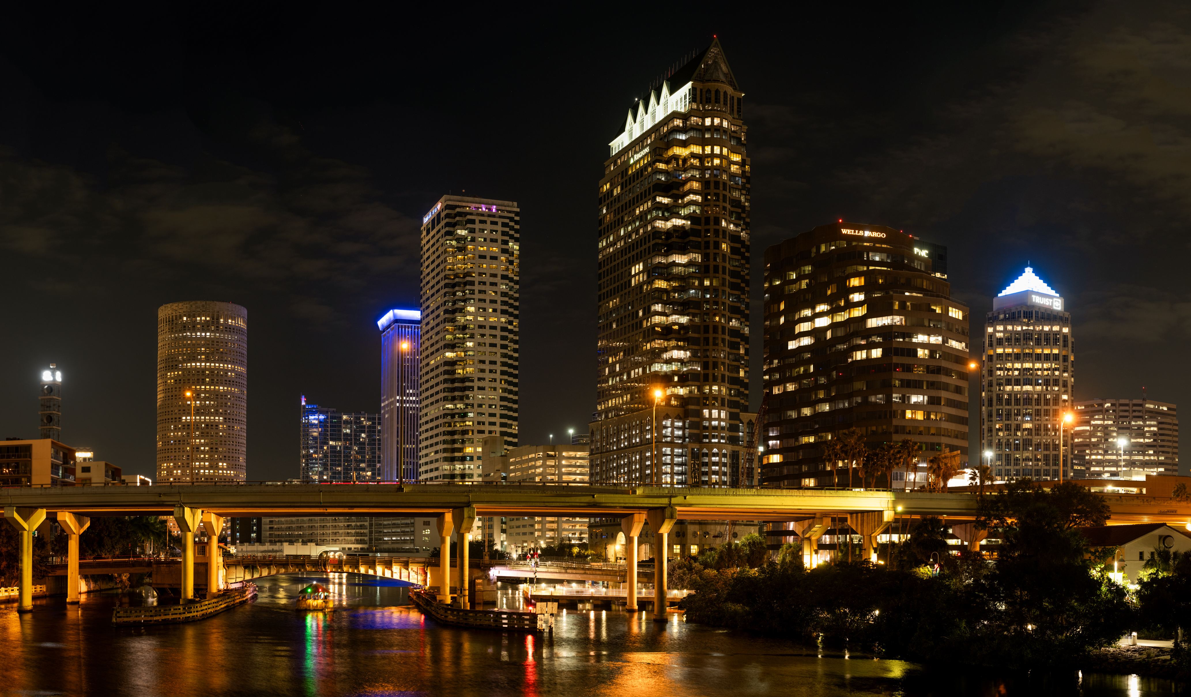 This has a lot of potential, but I would have made the background to the left and the right completely black, so it was all about the bridge without the streaks of light distracting.