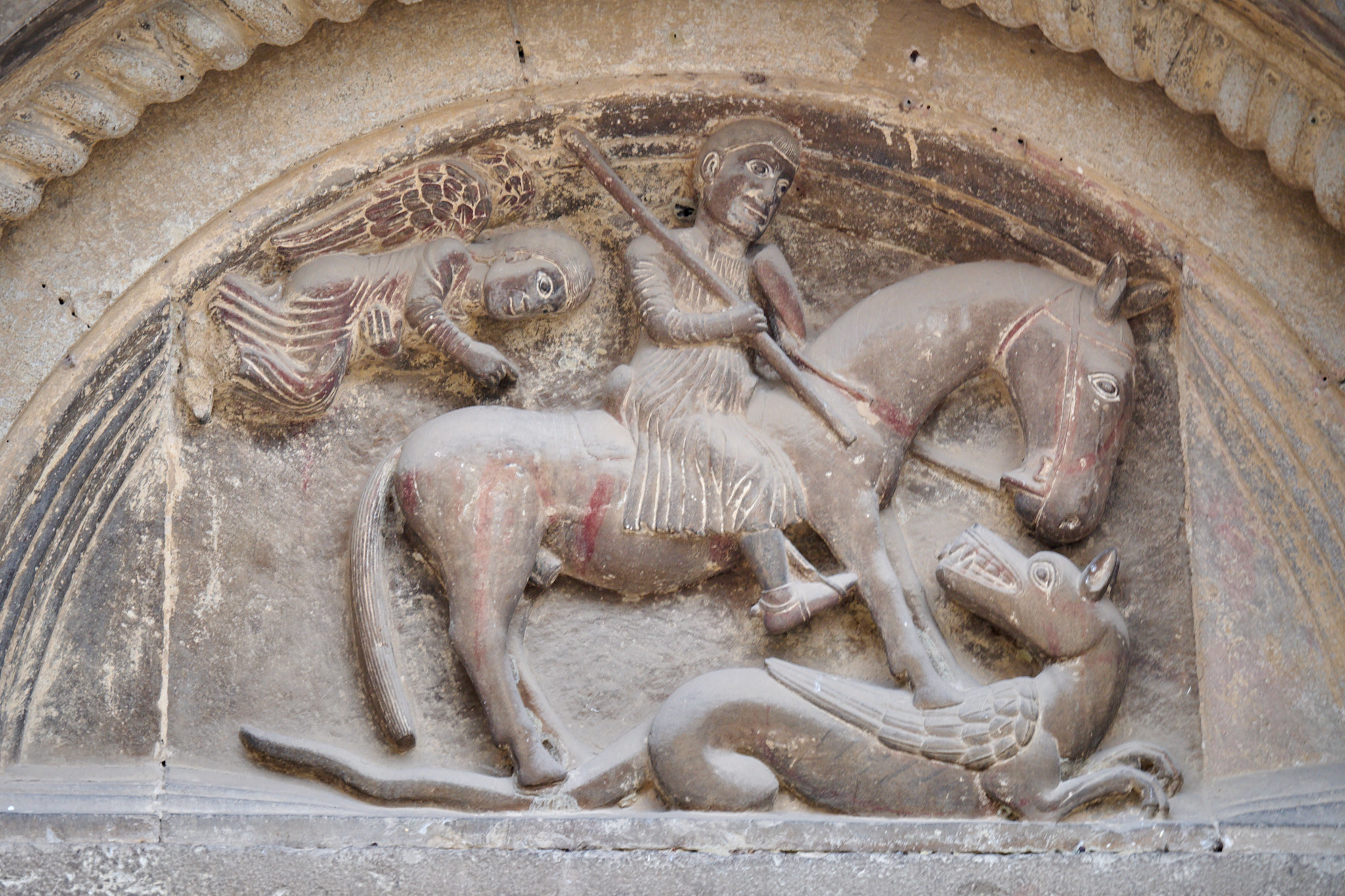 Very nice street (?square) scene. The romanesque sculptures are wonderful, as ever, especially the wall corner and the capital with its two tailed melusine. You should make a composite image of the many melusines you have shared over the years.
