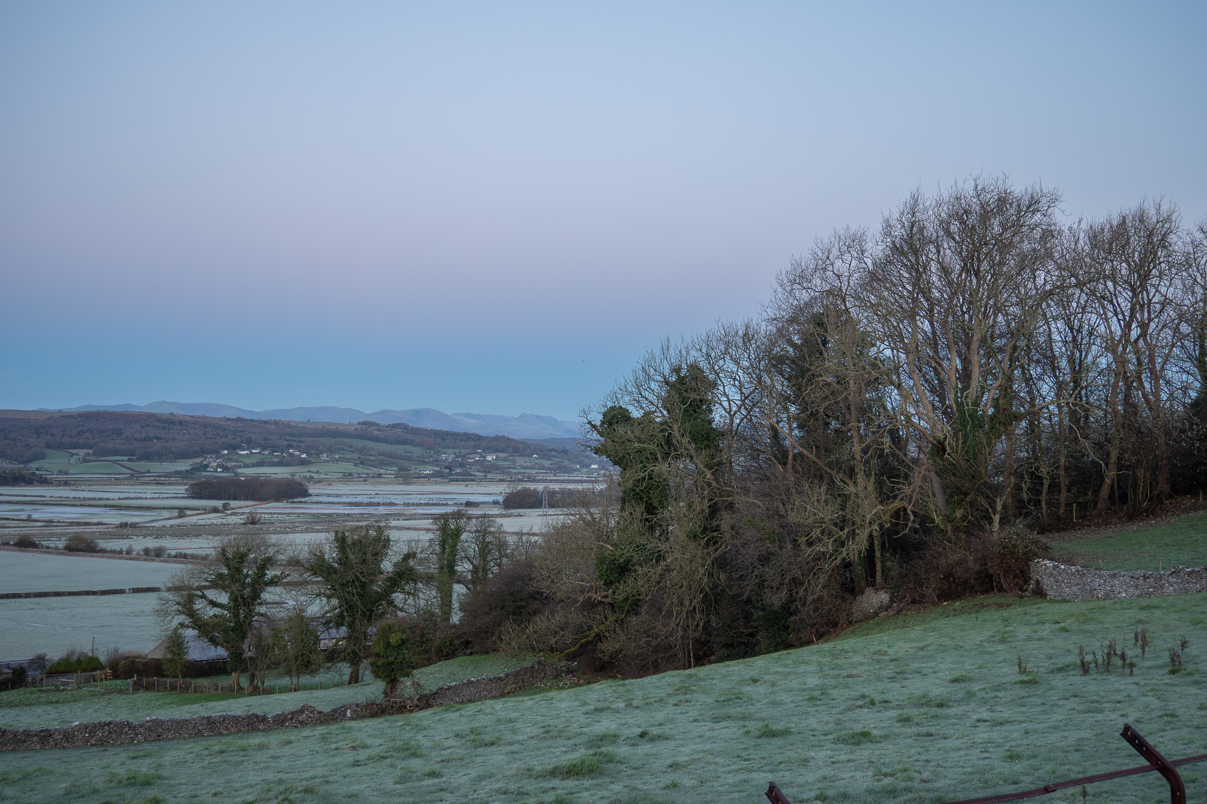 The sky cleared and the temperature dropped. Wednesday brought a beautiful clear dawn, with frost and a spectacular view from the house. The distant fells of the Lake District can be made out on the horizon, the leftmost high point being The Old Man Of Conniston