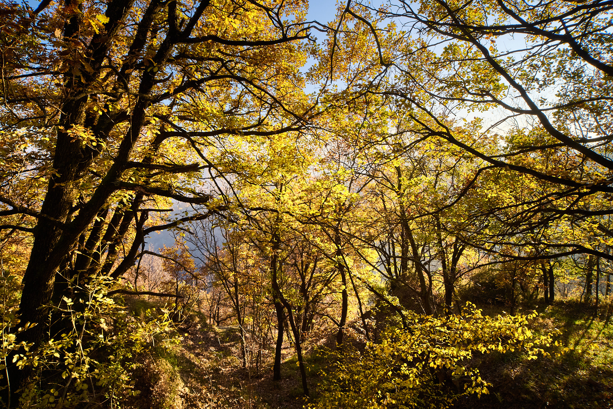 The view into the mountains from a bit higher up, but still not much snow.