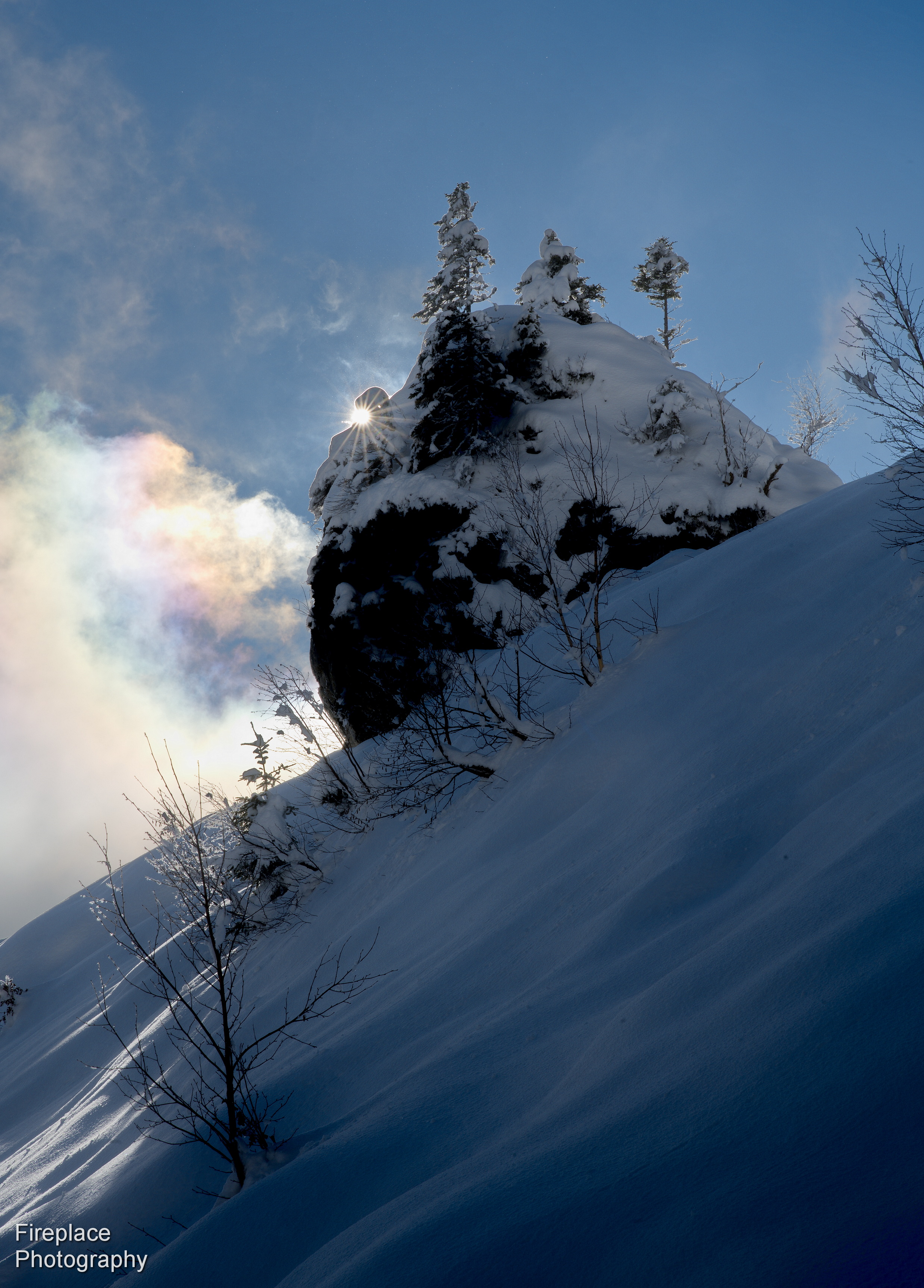 This time with a little sunstar and subtle rainbow effects in the clouds (best viewed large to see the snowflakes in the air)