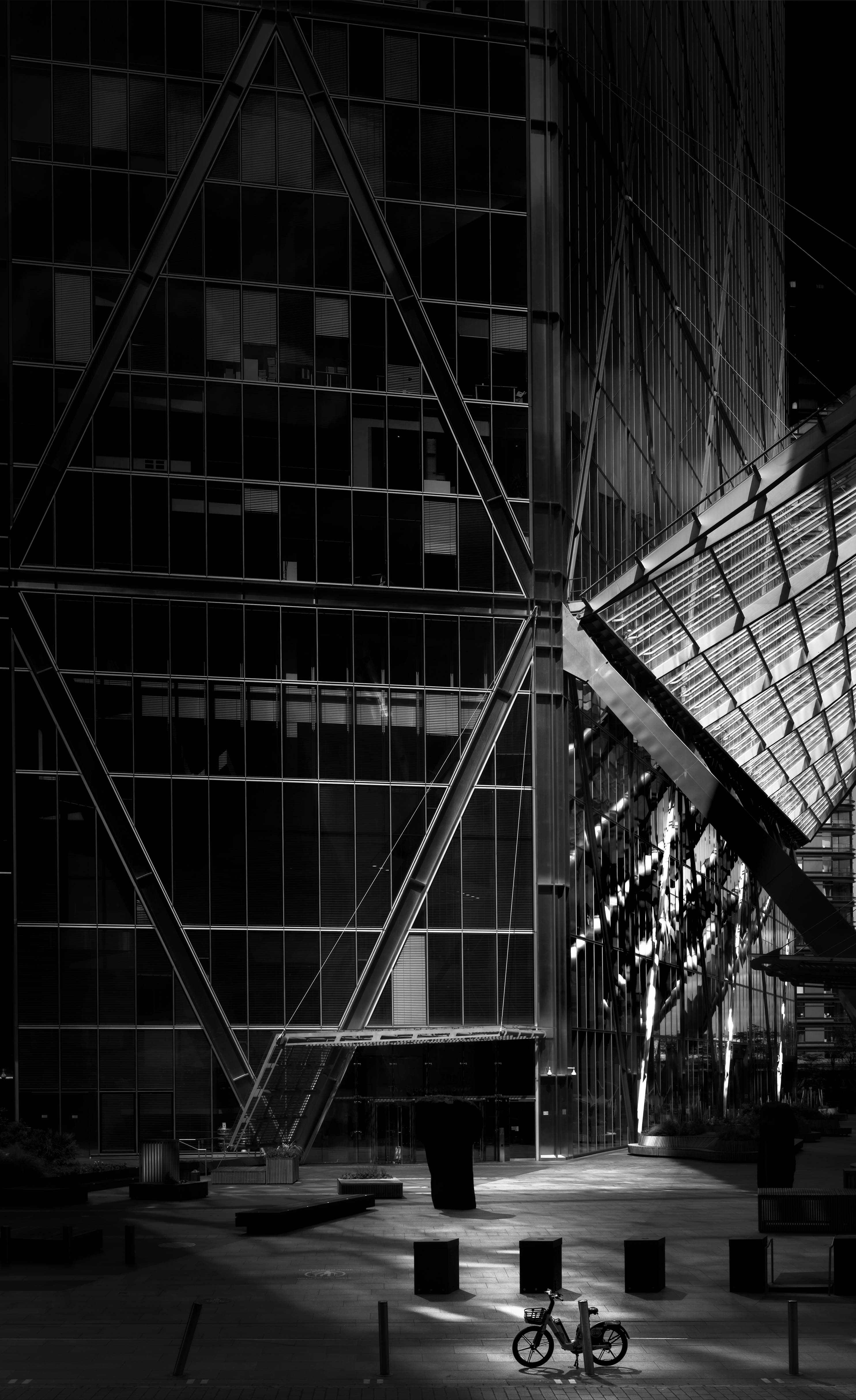 I like all the massive engineering structure/railing and the contrast with the homely little bike frame.