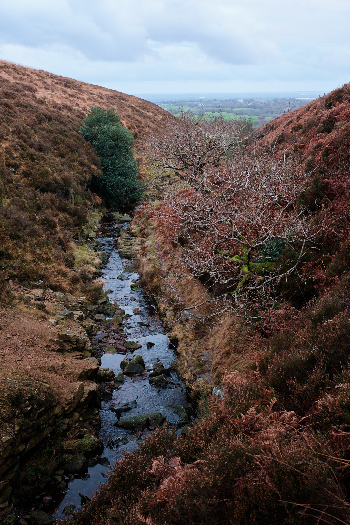 At this point it was time to leave the brook and head up onto the moor. This shot was taken part way up the slope and once more looks downstream.