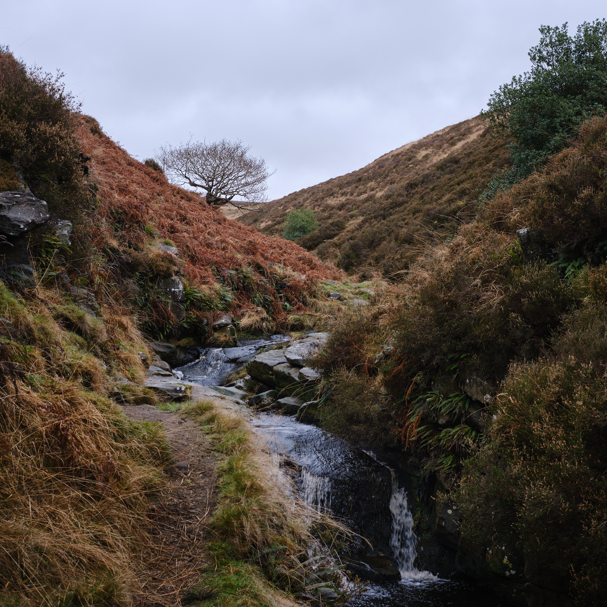 Of course I chose the latter, but hadn't mentally prepared myself for just how slippy it would be, so it took the best part of two hours carefully negotiating the slippery surface to reach the point where the gorge opens out into a wider valley where I would leave the brook and head up onto the moors (albeit briefly).