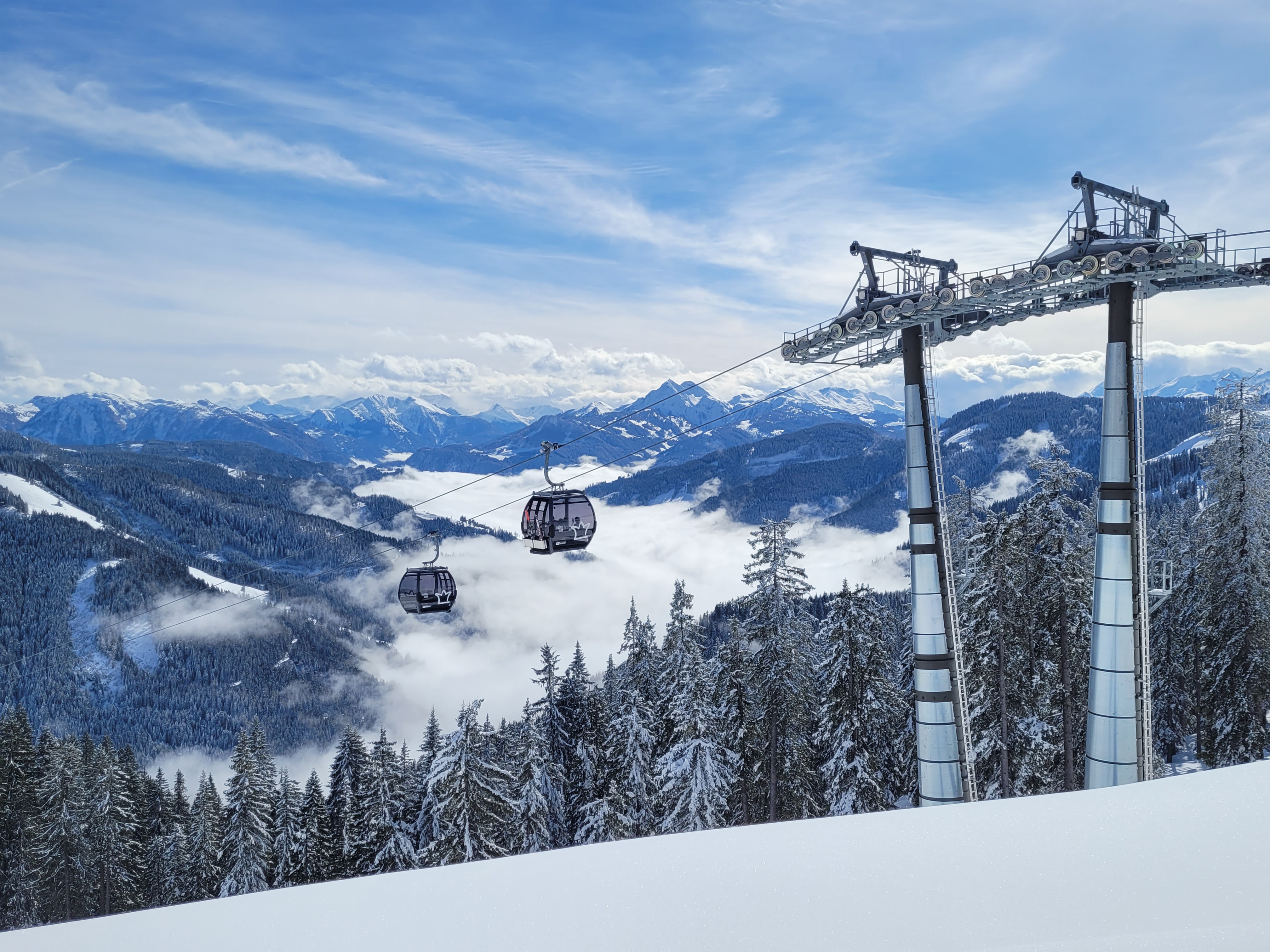 We were really lucky, the conditions were perfect! There had been no new snow for about 3 weeks, but on the day we arrived 40cm of fresh new snow arrived too. That did make driving here quite adventurous! Despite snow chains for the last 10km, I finally got stuck just 40m before our house, and started to slip down very close to the steep edge.