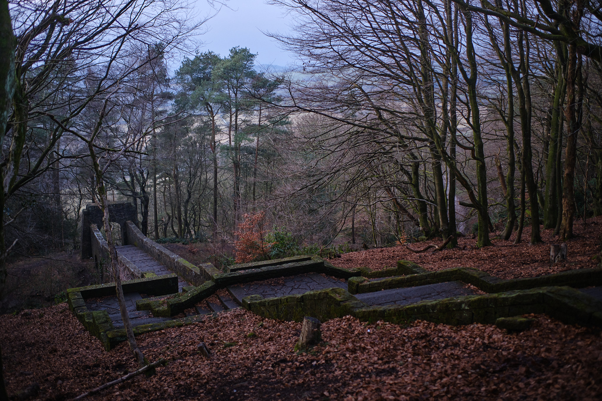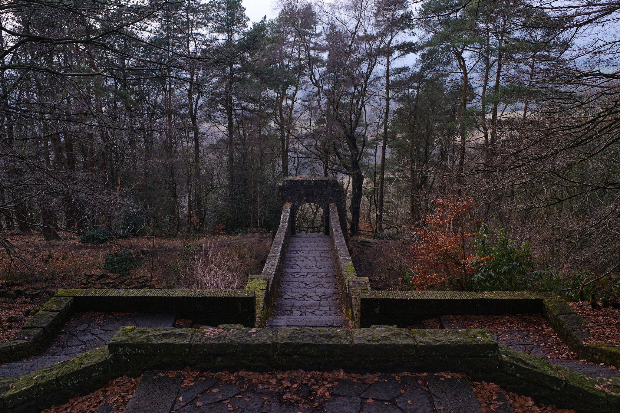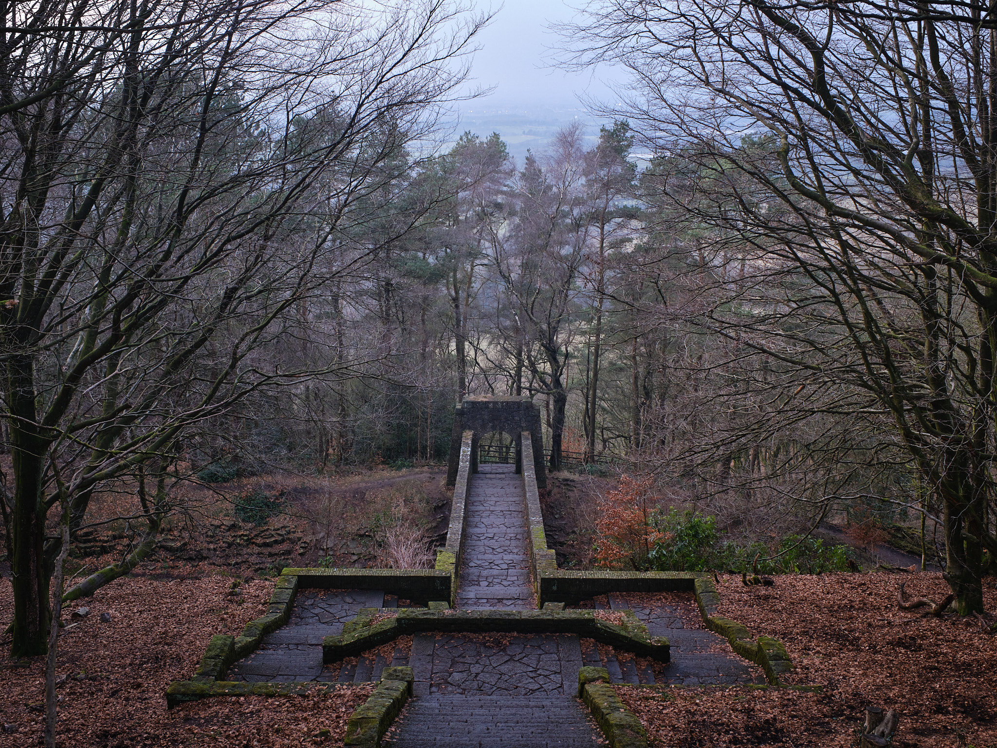 This is taken from the roof of one of the summer houses (there's a little viewing platform there) looking down the stepped ornamental path and across Lever Bridge.