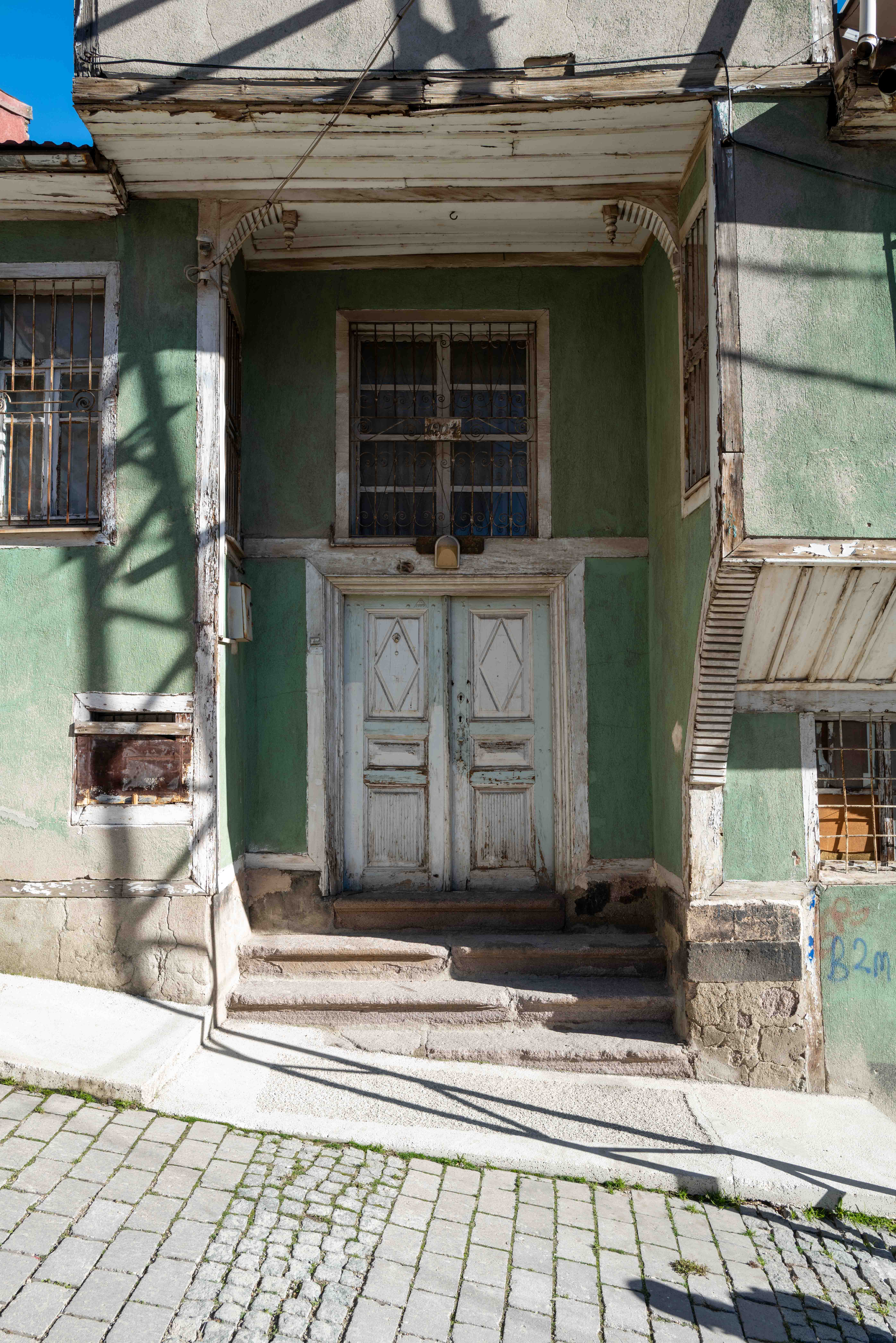 This is the entrance gate of an empty house awaiting restoration,in Turkey, Afyon, my hometown Currently, no unapproved alterations are allowed as it is a historic building. As restoring the houses according to the law’s requirements is very costly and the owners are poor, many of these houses deteriorate slowly. Interestingly, the metal door seems relatively new and was likely added before the conservation law came into effect. The construction date of the house, inscribed in the Ottoman Rumi calendar, reads 1318, which corresponds to 1902. It’s a fascinating detail, as several old houses still stand in this neighbourhood. Notably, if the construction date is written in Arabic and the Rumi calendar, it indicates that the house likely belonged to a Muslim. Conversely, dates inscribed in Latin and the Georgian calendar typically signify that the owner was a non Muslim.