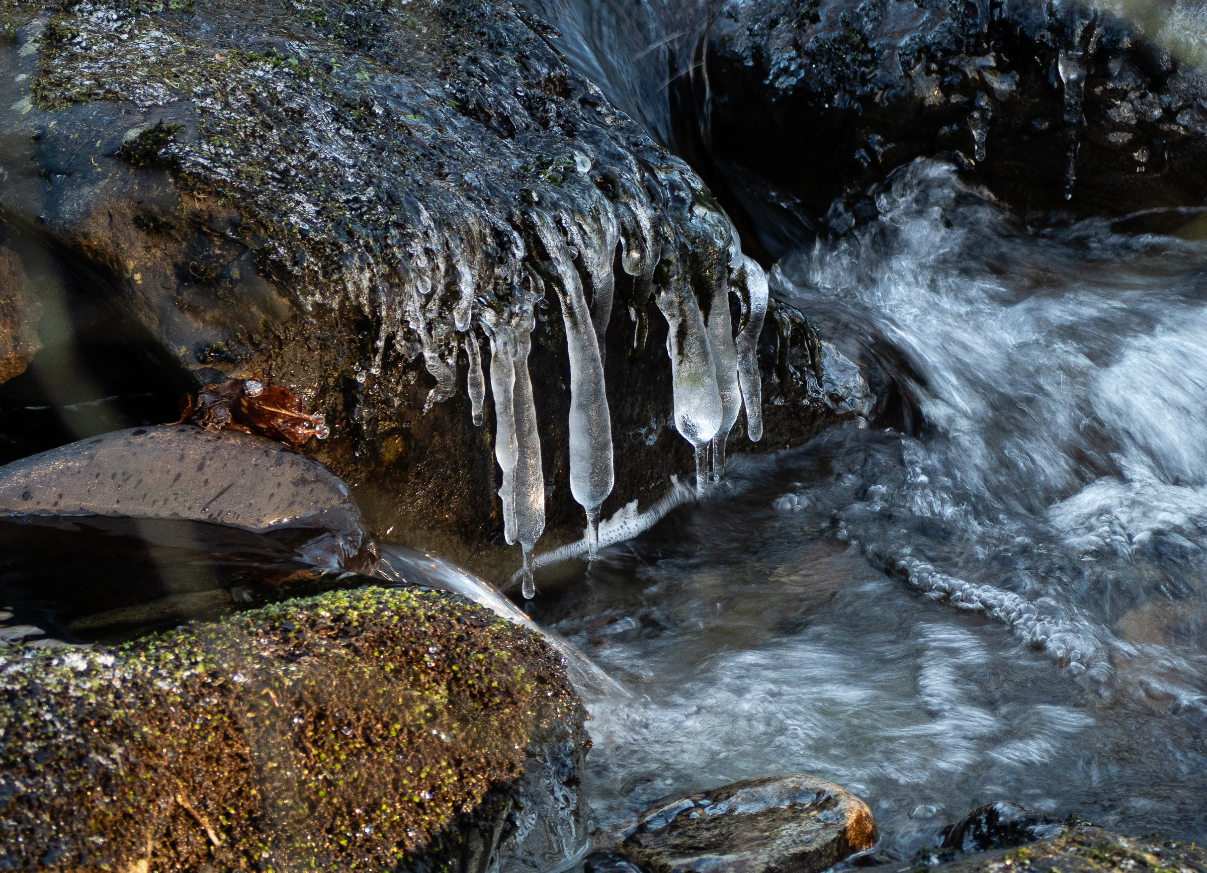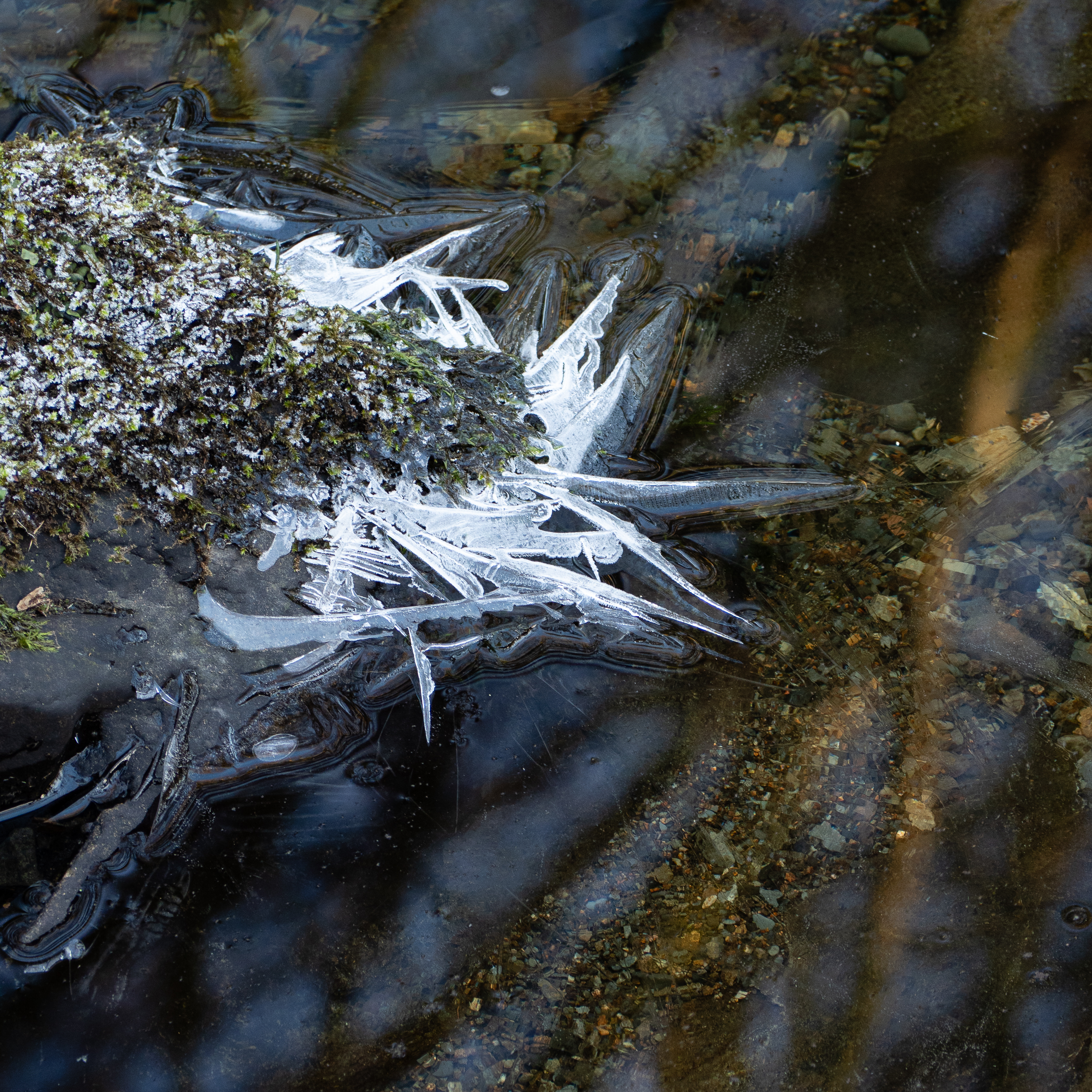 This is close to the point where the river enters the woods via a culvert under the A675 (you can just see the stones of the embankment at the top of the frame). What drew me to this scene was the wavy branches and knobbly texture of the tree on the left combined with the surprisingly quite strong colour of the dead leaves for this time of year.
