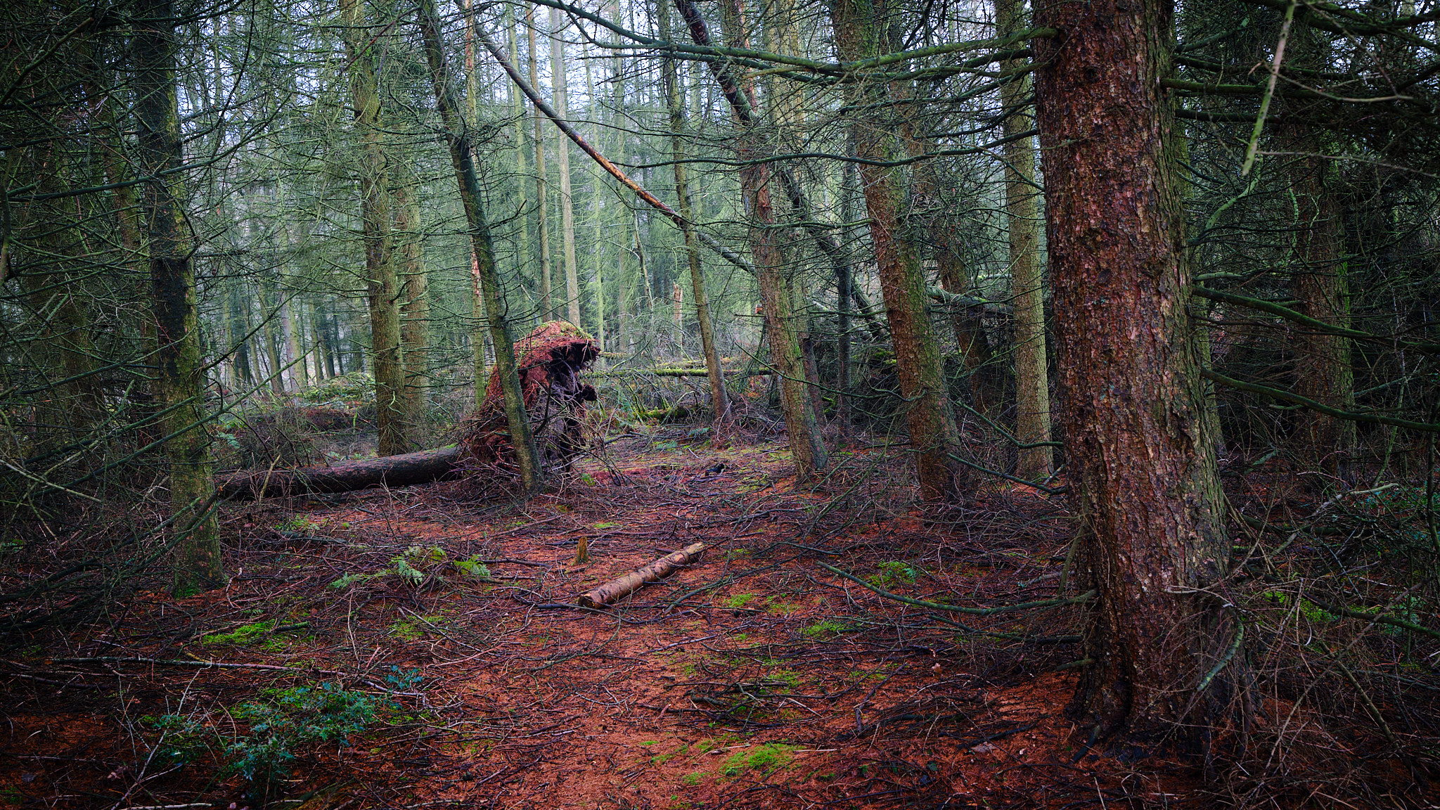 As I wandered through the woods, signs of wind damage were everywhere, but nowhere more evident than here. I originally shot this in X-Pan format (65:24), but when editing that felt a bit tight, so I opened it out a bit to 16:9, which felt like a more appropriate crop.