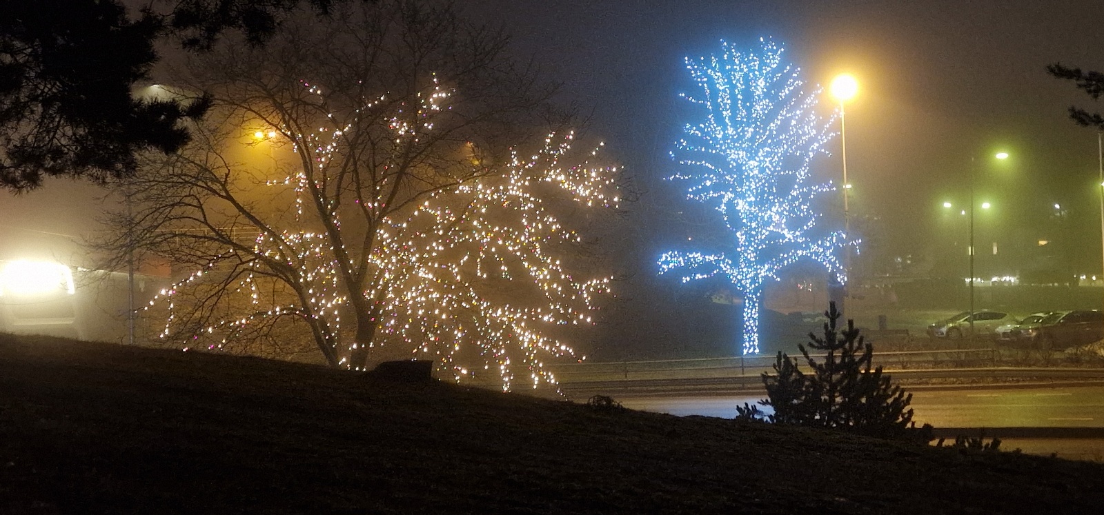 A particularly evil looking tree, its branches raised like a dark wizard about to cast a spell.